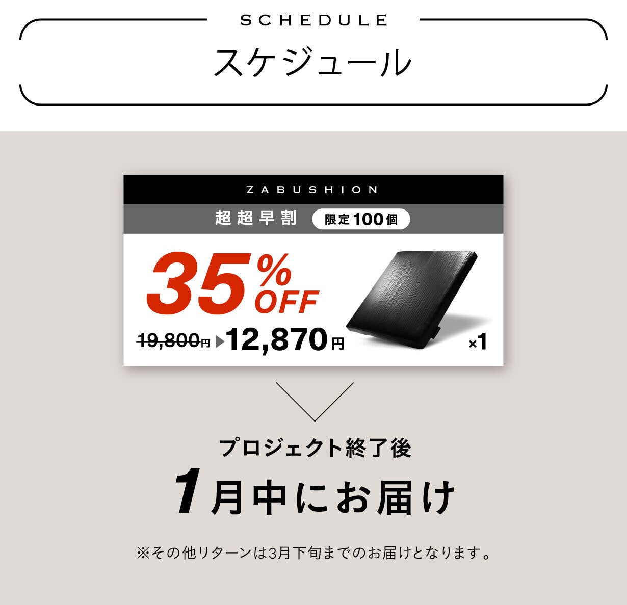 2026/01/21 14:48ZABUSHION運営事務局でございます。12月18日(木)よりスタートしたZABUSHIONプロジェクトは、1月19日(月)をもって無事終了いたしました。多くのご支援を賜り、心より御礼申し上げます。【1.プロジェクトについて】支援総額:¥683,290支援者数:52名達成率:683%このたびは、皆さまからの温かいご支援やコメントを賜り、心より感謝申し上げます。想定を大きく上回る結果を達成することができました。皆さまとのご縁に深く感謝し、今後もより一層精進してまいります。この場をお借りし、改めて御礼申し上げます。【2.お届け時期について】工場・配送会社と連携し、以下の日程で発送を予定しております。配送は佐川急便です。「お届け予定:2025年1月」 → 1月26日(木)頃より順次発送※お届け日が近づいているため、直前のお届け先変更は承れない場合がございます。あらかじめご了承ください。「お届け予定:2025年3月」 → 3月上旬頃より順次発送【3.発送通知について】発送通知は、発送日以降、数日以内に佐川急便より、ご登録のお電話番号をもとにLINE経由でお送りします。-----------------------------------------------------------------------------------------------詳しくは以下をご確認ください:佐川急便LINE通知についてQ. 友だち登録していないのに、配達予定通知が届きました。なぜですか?LINE株式会社の提供する「通知メッセージ」機能の利用に同意されているお客さまを対象に、お客さまがLINEアプリに登録している電話番号情報と、お荷物の送り状に記載の電話番号情報を照合し、佐川急便LINE公式アカウントと友だちになっていないお客さまや、スマートクラブとLINEをID連携していないお客さまへも、LINEでお荷物のお届け予定を通知しています。-----------------------------------------------------------------------------------------------出荷・配送状況の確認をご希望の方で、LINEをご利用でない方、または通知が届かない方は、大変お手数をおかけいたしますが、**メッセージより「送り状番号連絡希望」**とご連絡ください。確認次第、ご連絡させていただきます。細心の注意を払っておりますが、万一ご不明点やお気づきの点がございましたら、お気軽にお問い合わせくださいませ。迅速に対応いたします。引き続き、ZABUSHIONをどうぞよろしくお願い申し上げます。 もっと見る