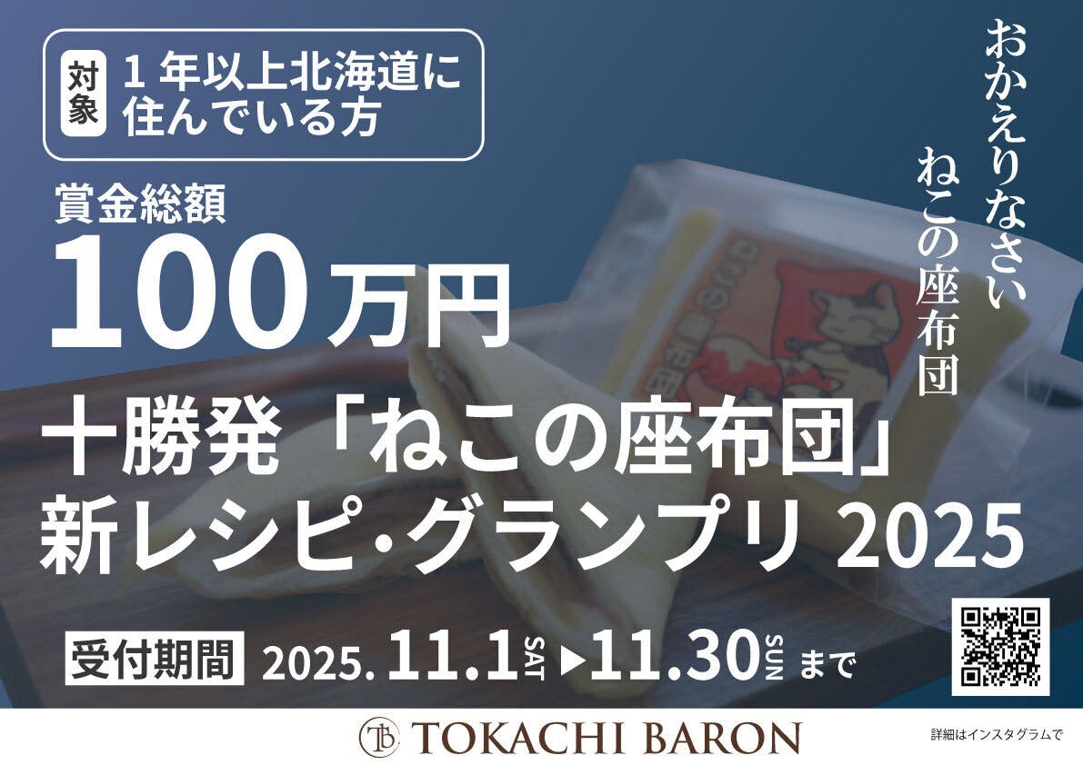 「十勝発『ねこの座布団』新レシピ・グランプリ2025」をスタートしました。総額100万円の賞金を設定し、入賞作品は商品化を前提に検討。一次審査は弊社の専門家グループ、最終審査は公式審査員100名によるホームユーステストで、“本当に選ばれる味”を決定します。既に応募者から斬新なアイデアのレシピ応募が着々と届いています。