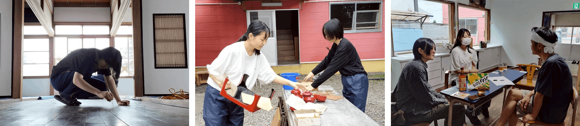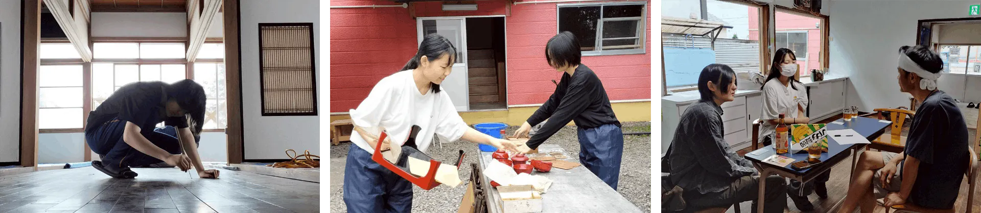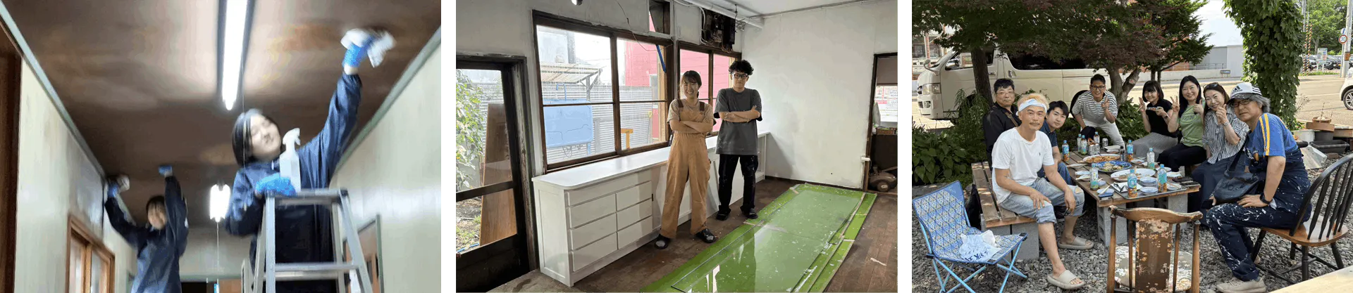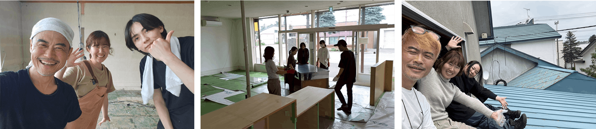 「ここを塗るの楽しいね!」「昔の店の雰囲気、残したいよね」と、笑い声が絶えない明るい現場。世代も地域も職業も違う人たちが一緒になって手を動かし、杉野菓子店の再出発を楽しみながら支えてくれました。