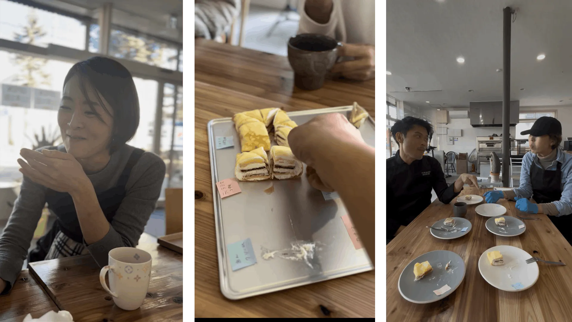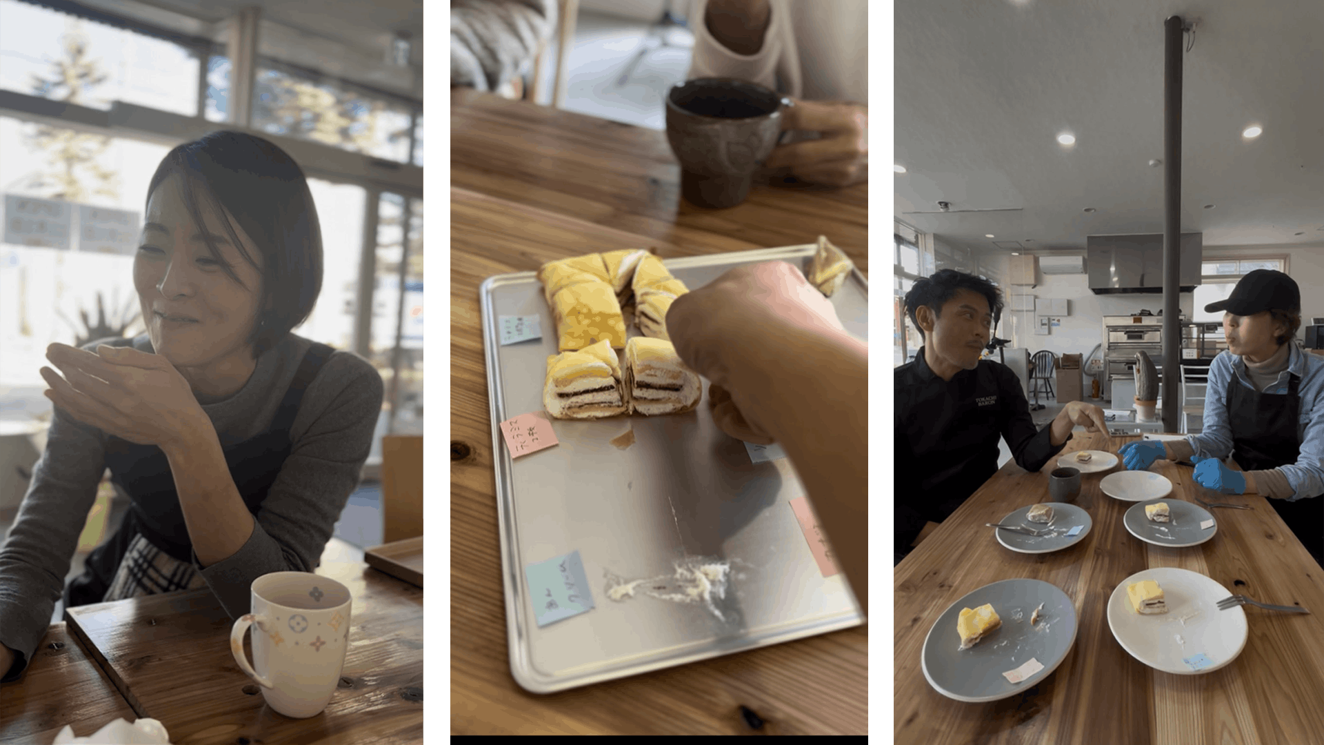 「杉野菓子店」と正式に事業承継契約を締結し、「ねこの座布団」の基本レシピを再現しました。復刻のチョコバナナ味に加え、ティラミス味、抹茶テリーヌ味など新フレーバーも開発し、試食会では好評をいただいています。