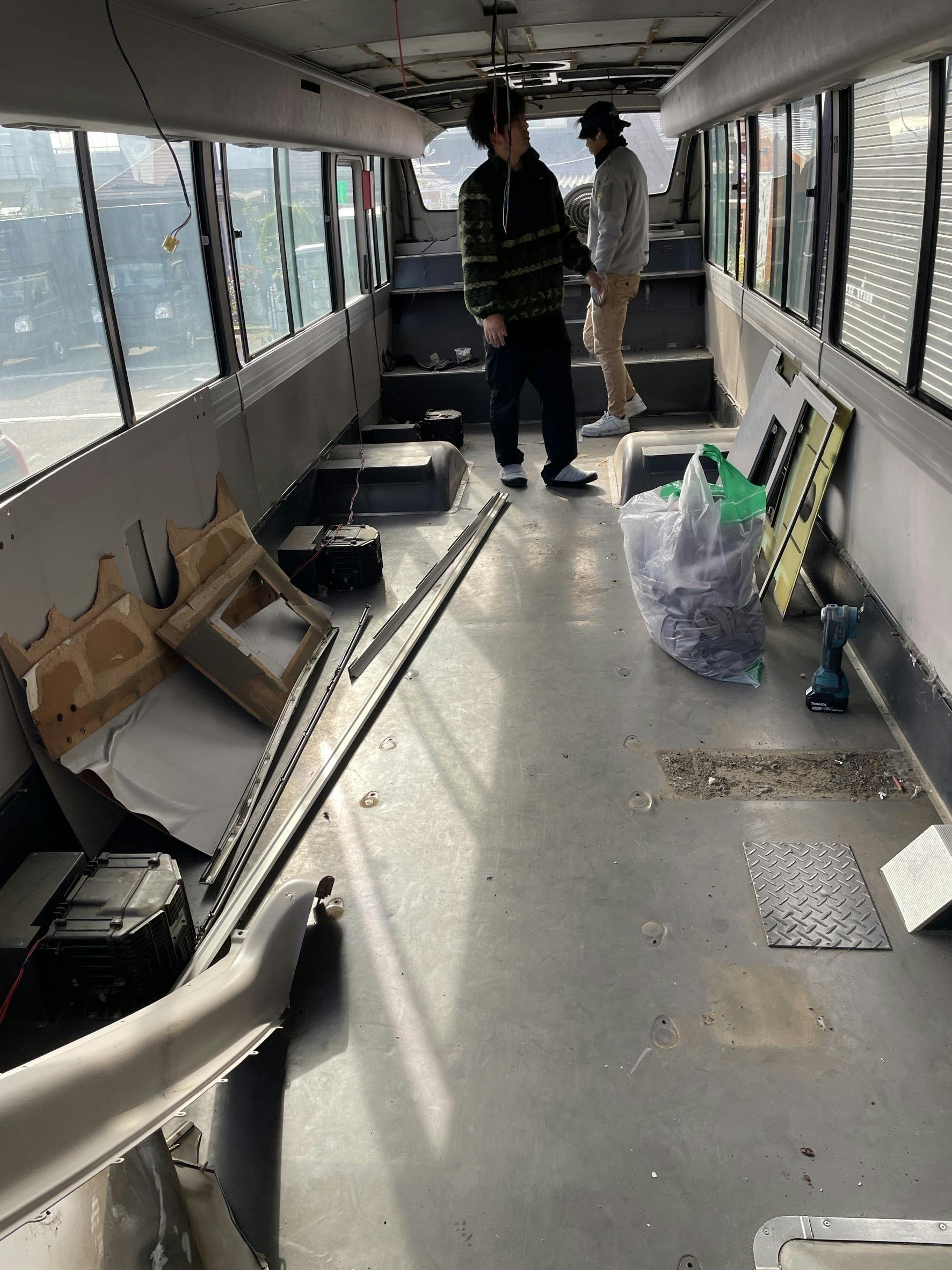 現在、バスの内装はほぼ完成し、宿泊設備として利用できる段階まで来ています。