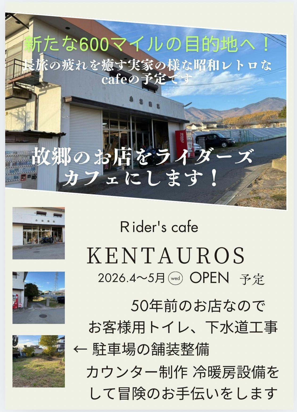 このプロジェクトは、私にとって夢の再現であり、次世代のライダーたちにとっての新たな伝説の始まりです。皆様のご支援をいただき、情熱を持った仲間たちが集う「聖地」を実現させることで、私たちの夢を未来に繋げていきたいと思っています。どうかご協力のほど、よろしくお願い申し上げます。