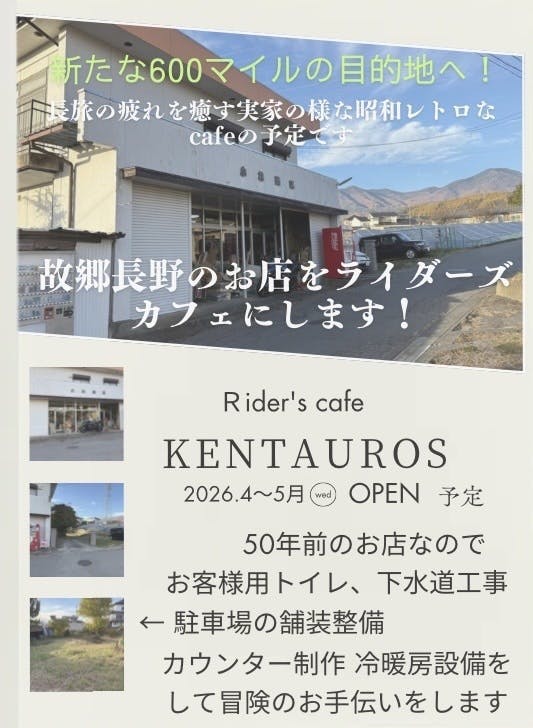 ライダーズカフェ「ケンタウロス」は、長野県 小諸市にオープンします。
