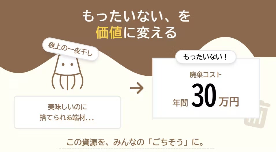 端材イカの廃棄にかかっていた年間30万円のコストが、カレーという形に変わることで、・廃棄ではなく「商品」になり・コストではなく「収入」になり・負担ではなく「復興への一歩」になります。