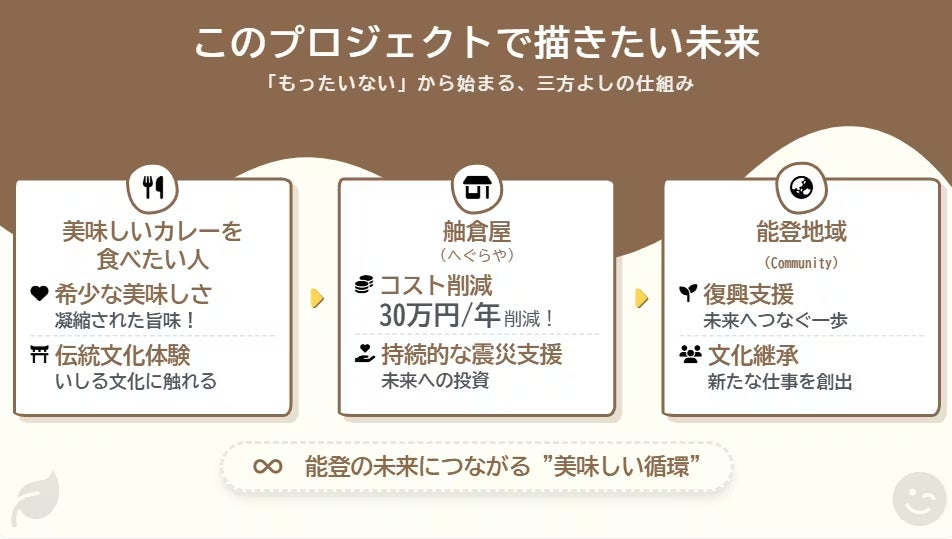 一皿のカレーから、能登の未来につながる “美味しい循環” を生み出すこと です。