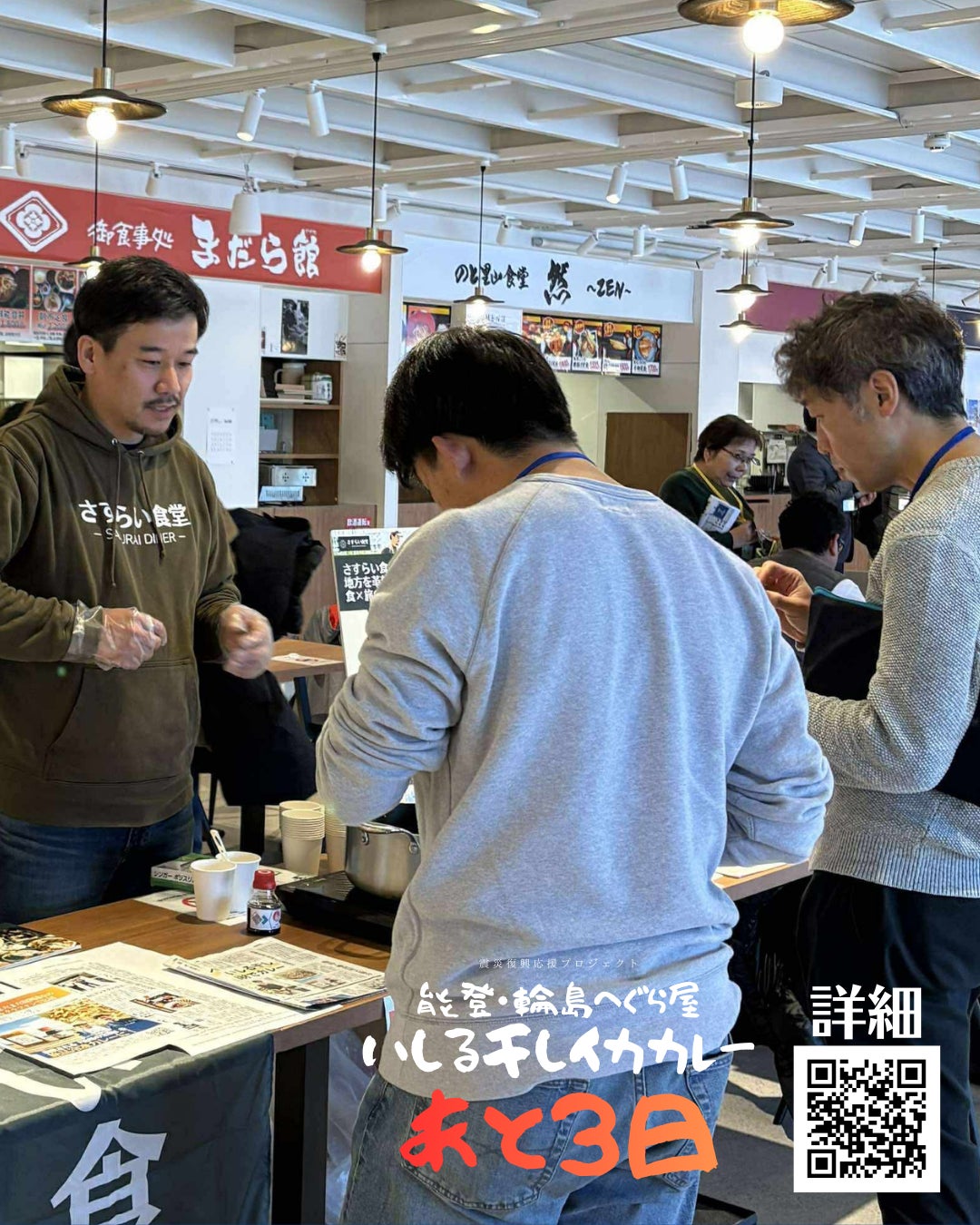 2026/01/28 20:58\CF終了までのこり3日/支援してくださっているみなさま。お陰様で、締切まで3日をのこして目標額98%まできております。一方で支援者の数が目標の120名にはまだ30名近く足りておりませんので引き続き、情報の拡散などのご協力よろしくお願い致します。のと発酵的復興会議2026に参加:試食提供年末年始の能登訪問をしてきた中で1月17日に能登空港に隣接するNOTOMORIで開催された #のと発酵的復興会議 に参加させていただいたレポート投稿をいたします。開催日は1月17日で少し時間が経ってしまいましたが、その時に感じたことや、「私たちは復興のプロセスで 未来に何をのこせるか」という問いに対する私なりのアンサーとして、これからこれからの能登との関わりについてまとめてみました。────────────*イベント名称にある「発酵的」という意義を体感*────────────各地で発生する震災の後は、不安からかどこか勇み足になってしまったり、早く復興させたいというような思いから焦りが生まれたり、なかなか進まない復興に対する憤りがあったりするような気がします。そんな中でも、微生物(菌や酵母など)のはたらきによって、食べ物や物質が人にとって“良い変化”を起こす「発酵」のようにゆっくりと。自然の摂理にしたがい人間にとって「良い」変化を起こしていこうという取り組みであり、『落ち着いて、ゆっくりやってこ~』というような。そんな声かけのようにも感じました。************もう少し噛み砕くと(※これらは私の個人的解釈です)************◇微生物が 糖やたんぱく質を分解する過程で-うま味が増えたり-香りが生まれたり-体に吸収されやすくなったり-保存性が高まったり結果として、おいしく・役に立つ状態 になる発酵と同様に◇人が関わり、時間をかけて向き合う過程で-能登という地域の味わいが深まり-能登に人々を誘う「香り」が立ち上がり-関わる人たちに能登の魅力が浸透していく-議論を通じて、能登にある価値や資産が未来に遺っていくこの会議が促す、そうした発酵的な積み重ねが結果として、若者や子どもたちに能登で何を遺していくのかという行動につながっていくのかなと。────────────*のと発酵的復興会議の「若者が主役」*関わる人たちがそれぞれの想いを集約して、徐々に徐々に、時間をかけて良くしていこうという取り組みであるとともに、そこにある熱量や空気感が心地よい「発酵」を促す。こういう意識で創られた場は、個人的にはすごく心地よい場でした。何よりも、面白い取り組みだと感じたのはディスカッションをする時間が2回ある中でのRound2。ここでは「若者が主役」。そしてOver35の発言権はメモ書きで提出。これは私にとって新鮮でしたし、こうあるべきだなって感じた仕組みでした。まぁ、色んな経験をしている人は、しゃべりたいこと多いし、愛が強い人たちばかりが集まった場はヒートアップしますよね。それを見越したこの仕組み。私に自制を促す強烈なメッセージでした(笑)────────────*さすらい食堂も「未来へ」*さすらい食堂は「料理人」だけでなく、若者やこども達、つまり「未来」に向けたメッセージも込めています。都市部は人が多く、モノや情報があふれて便利でもどこか関係性に頭を悩ませ“閉塞感”や“孤独感”を感じてしまうこともありますよね。そんなこと感じたらぜひ、さすらったらええよ~!なんてメッセージも届けたいのです。地方には、能登にはこんなにも魅力的な人たちが、こんなに活き活きしながら未来に向けて活動してるんやで!と。────────────*私の石川・能登との関わり*ここで支援してくださっている方々には周知のとおり、これまで発災直後にご縁があって二次避難されている方々が滞在する金沢市内のホテルで食事提供のお手伝いをさせていただきました。その後、何度か能登を訪れる機会があってご縁があった舳倉屋(へぐらや)さんがお金をかけて廃棄処分していた「いしる干しイカの端材」に出会い、冷凍いしる干しイカカレーをつくるプロジェクトが誕生しました。***クラファンページ詳細はリンク:「能登へぐら屋│復興応援│廃棄された『旨味の宝物』を冷凍いしる干しイカカレーに!」https://camp-fire.jp/projects/904405/preview***このクラファンを昨年の12月26日からスタートし、今週土曜日の31日まで実施しているクラウドファンディングをやっていたところ、ご縁をいただいた #のと発酵的復興会議 2026にも直前だったのにも関わらず参加させていただき、試食を提供させていただけることになりました。────────────【御礼】株式会社御祓川 森山 奈美 さん 合同会社 CとH 伊藤紗恵さん直前でのお願いだったにも関わらず、ご調整いただき参加させていただきありがとうございました!心より感謝申し上げます。お陰様で沢山の方々にさすらい食堂に興味を持っていただいたり、ご縁が繋がったり。下記のような取り組み