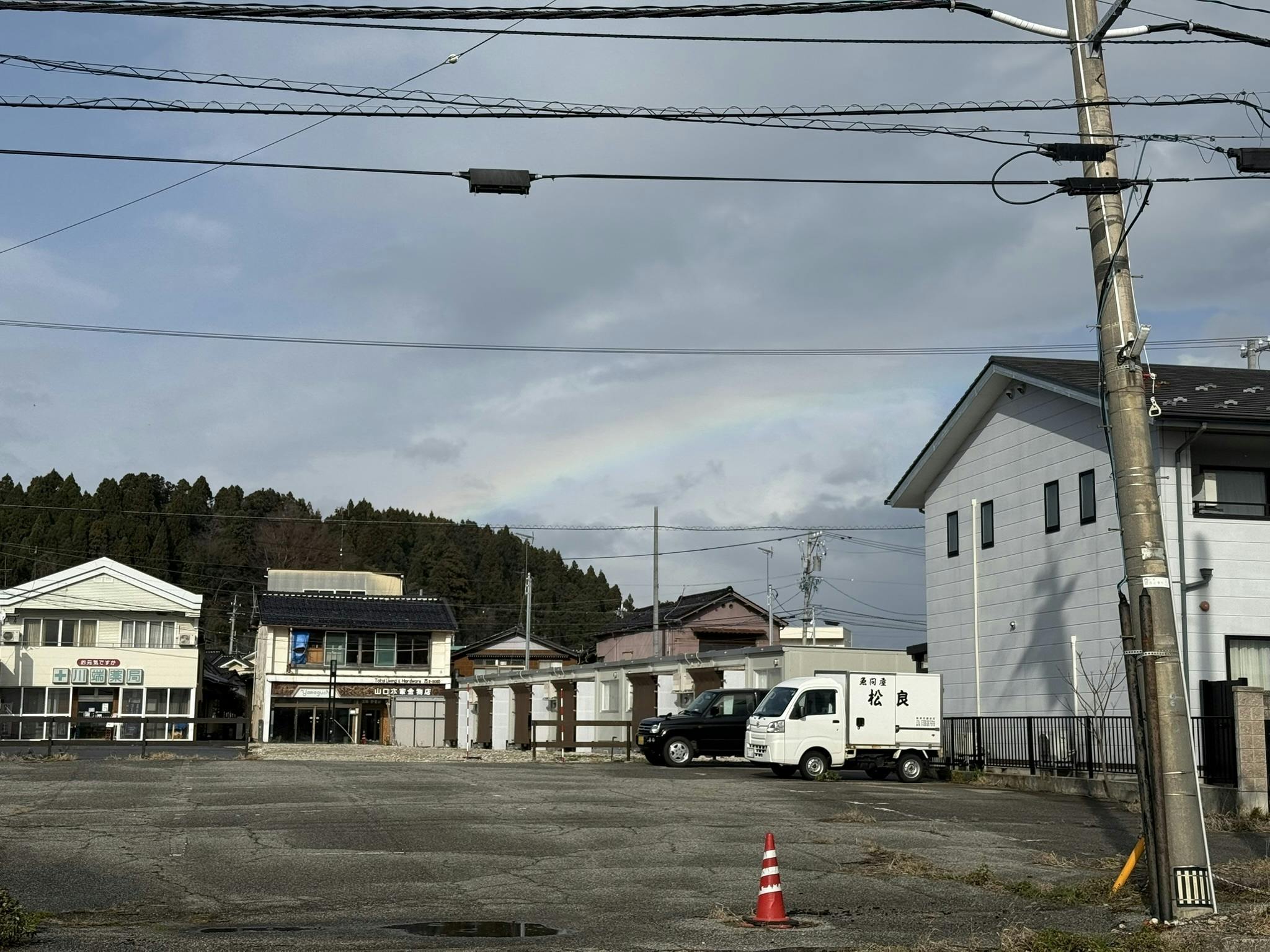 そんな中でも空に虹が。