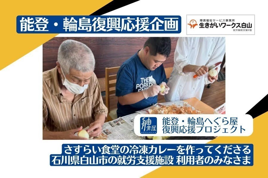 今回のカレーづくりを担っていただくのは、石川県の就労継続支援B型事業所である「生きがいワークス白山」さん です。