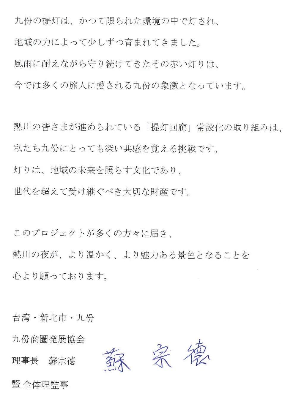 ■九份商圏発展協会 理事長 蘇宗徳 様