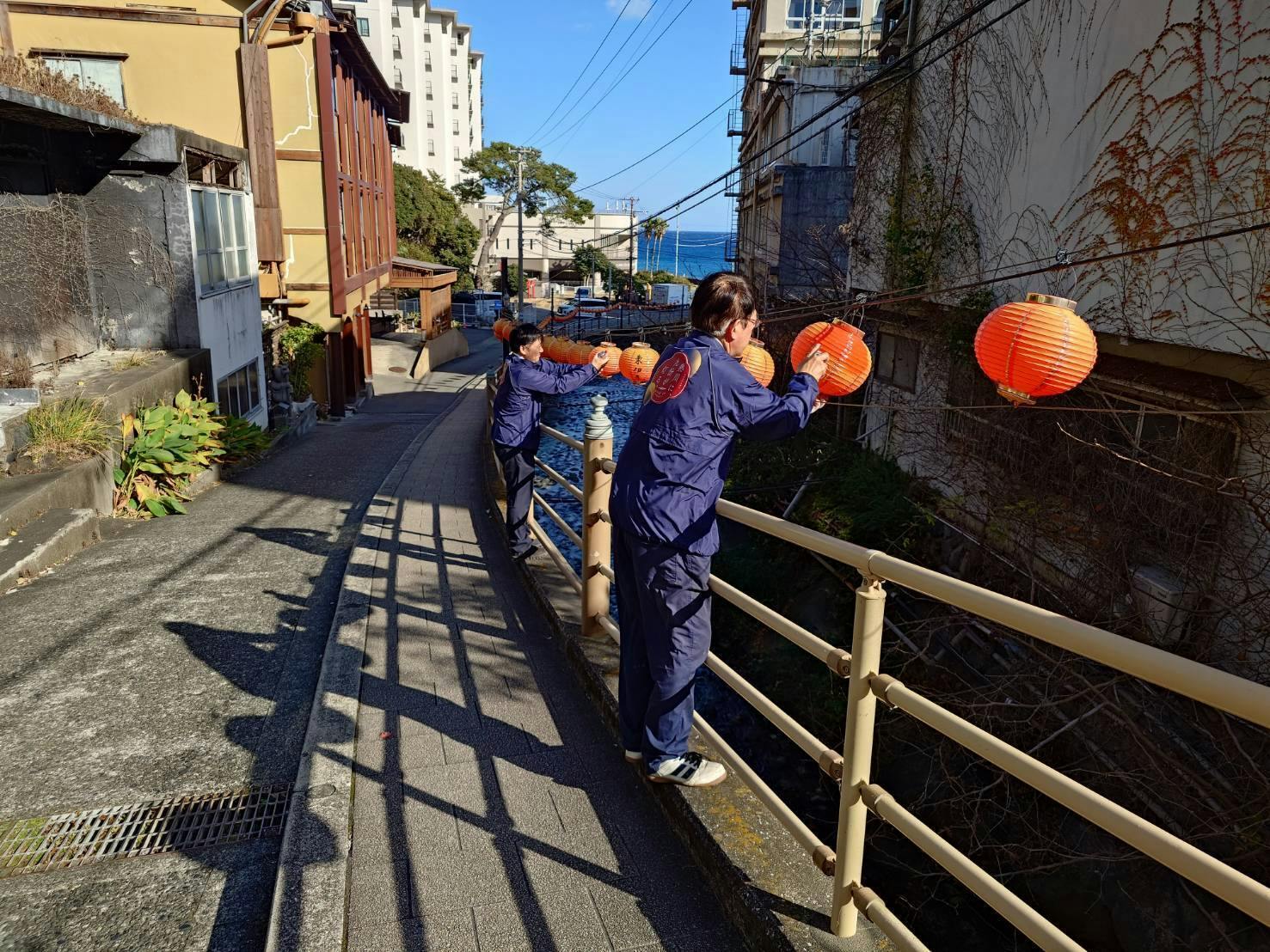 2026/01/15 19:30先日、協議会メンバーで色あせが見られる提灯のメンテナンス作業を行いました。この日は、景観・維持管理部会を中心に、一つひとつ目を配りながら、丁寧に手入れを進めていきました。提灯は、設置して終わりではありません。風や雨、日差しの中で少しずつ表情を変えていきます。その変化と向き合い、「灯りのある景観を保ち続けること」も、このプロジェクトの大切な役割だと考えています。派手な作業ではありませんが、こうした日々の積み重ねが、今の熱川の風景を支えています。ご支援いただいている皆さまに見守られながら、提灯の灯りを、地域のみんなで大切に守り育てていきます。引き続き、応援をどうぞよろしくお願いいたします! もっと見る