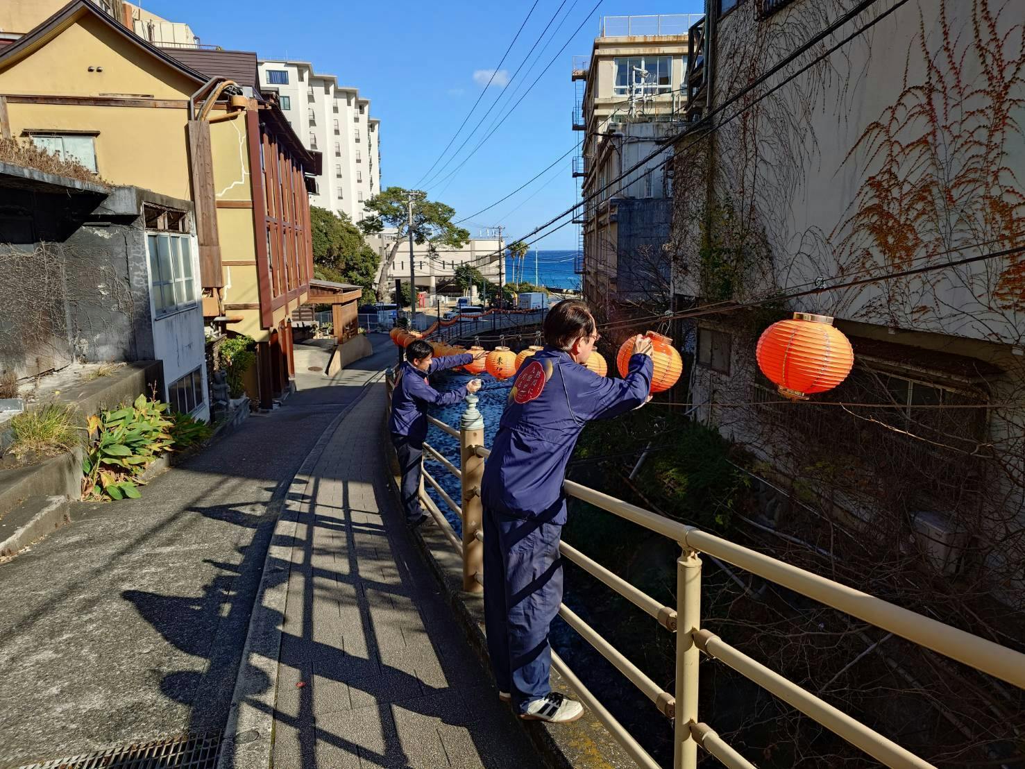 色あせが見られる提灯のメンテナンス作業を行いました。