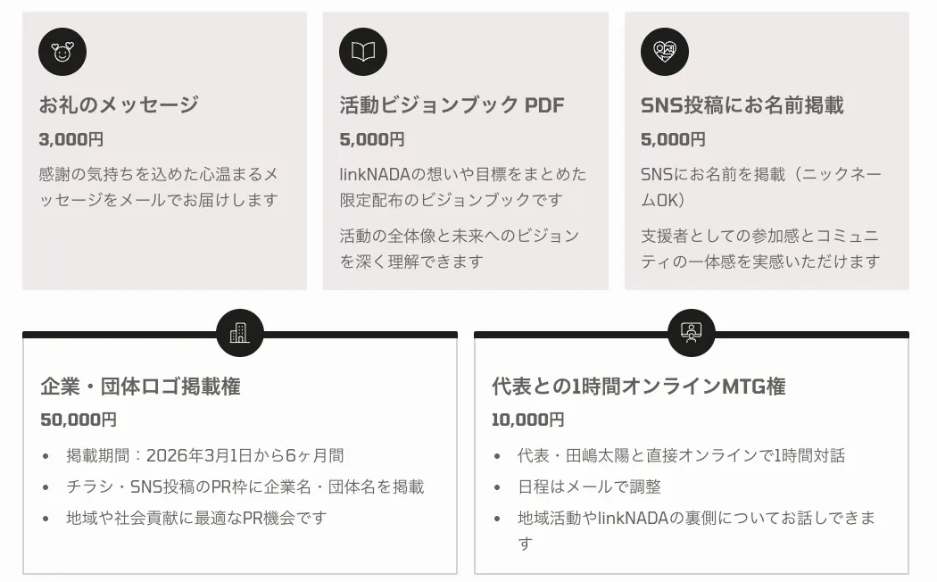 いただいたご支援は すべて、linkNADAを継続・改良し、地域と学生がつながる仕組みを守るために使用いたします。