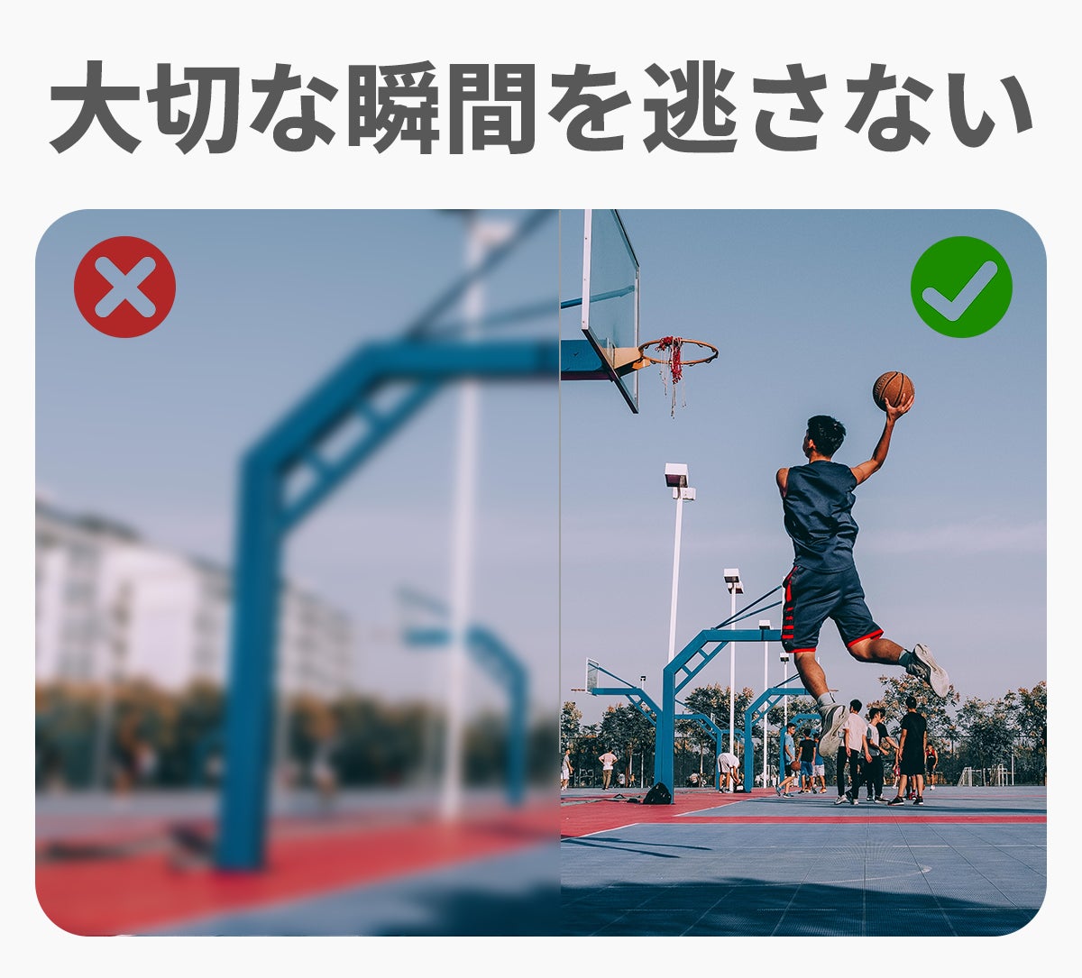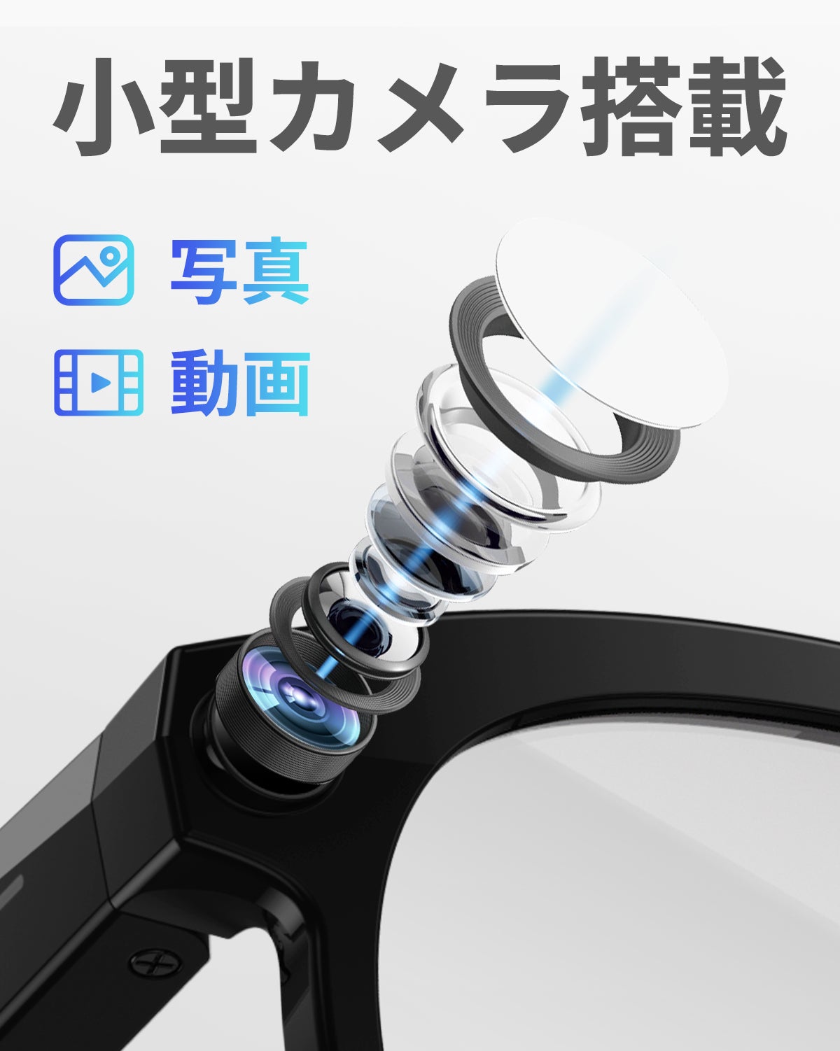 200万画素の高画質カメラが、あなたの視線をそのまま写真や動画に残します。スマホを取り出す手間なしで、子どもの成長や旅先の風景など、大切な瞬間を逃しません。手ブレ補正技術により、走りながらでも安定した映像を記録可能。
