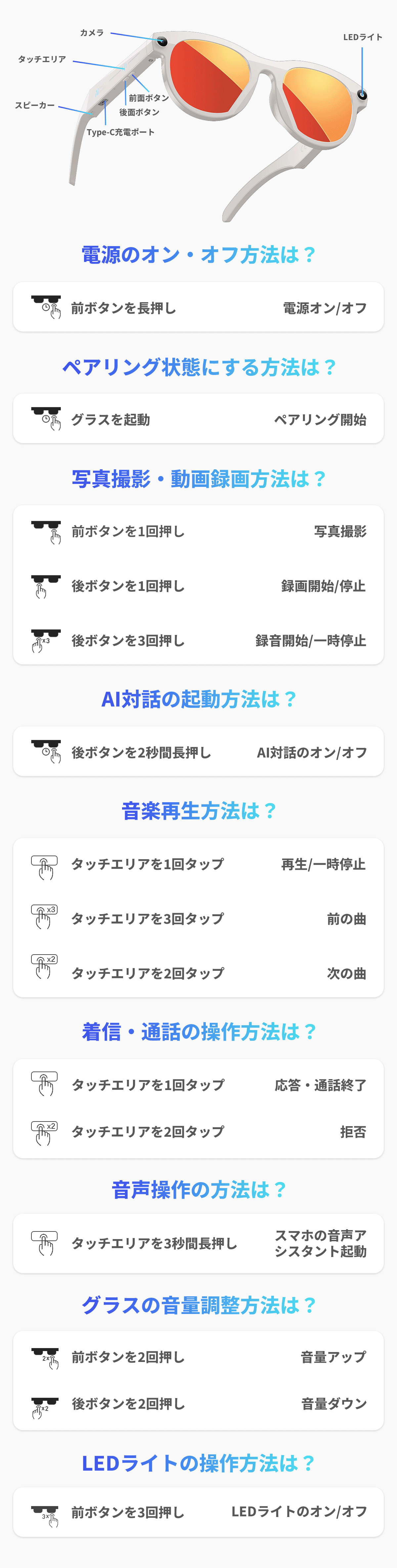 街中歩きや通勤中、アウトドアでも、フレームを軽くタッチするだけで通話の応答・終了が可能。高音質でクリアな会話を実現し、いつでもスムーズなコミュニケーションを保ちます。