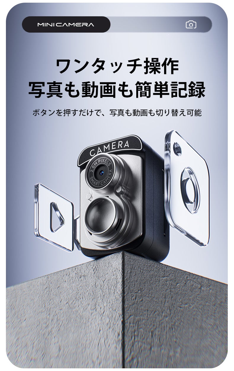 ・2.5cm×3.6cm%16gの超小型軽量サイズで気軽に撮影を楽しめる!・Type-C接続でスマホにデータを直接転送!6種類のフィルター搭載で多彩な映像表現を実現!・0.96インチのIPSカラーディスプレイで撮影内容をその場で確認可能!最大70分連続撮影対応。