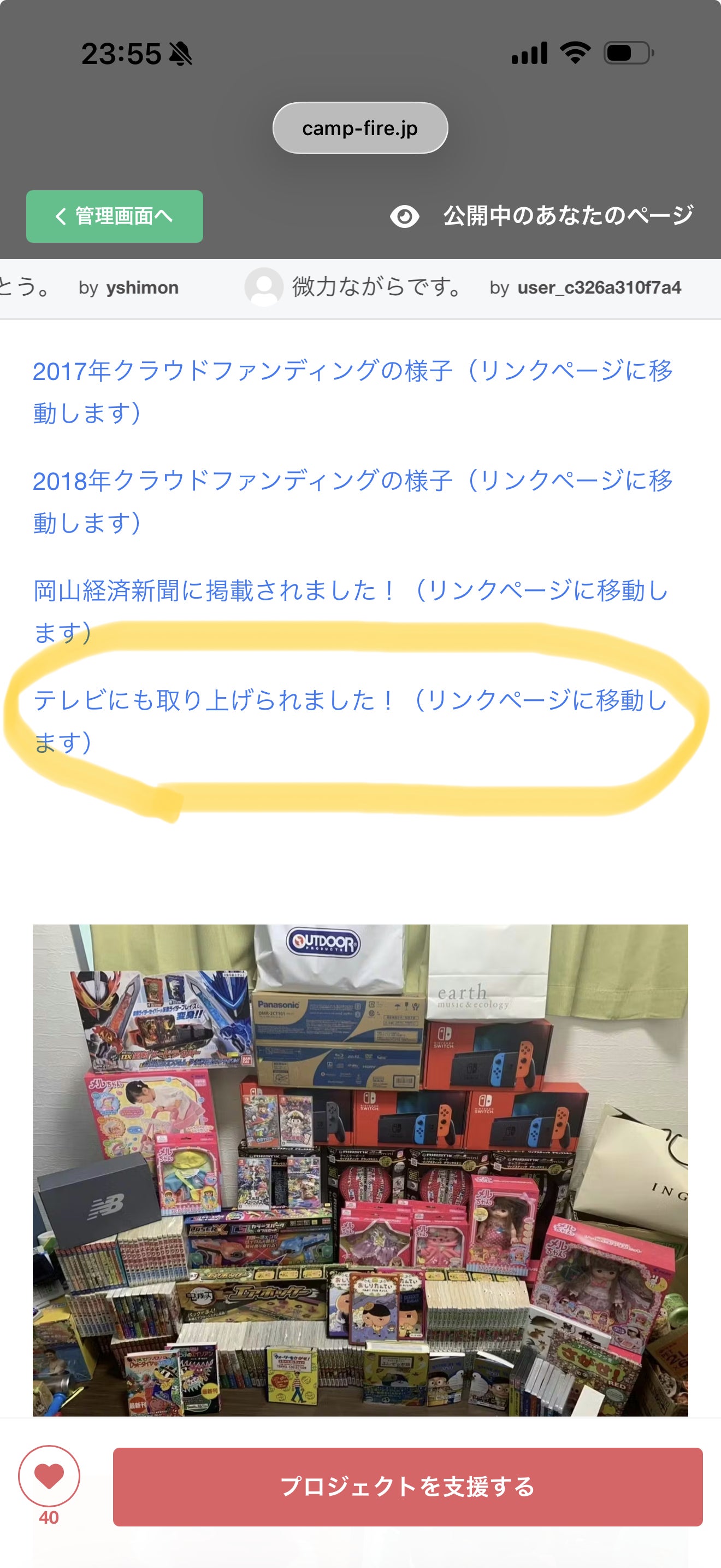 こちらのクラウドファンディングの本文に添付している動画に載せているのは2017年のTV取材を受けた時のものですが、この時のTVを見て1人の女性が直接私にメッセージを送ってきてくれました。