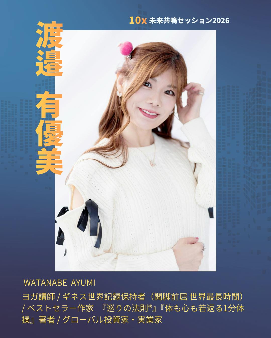 2026/03/06 11:06『巡りが整うと、未来は跳ねる』10x未来共鳴セッション2026にヨガ講師ギネス世界記録保持者そして著書『巡りの法則』の著者でもある渡邉 有優美さんが特別出演してくださることになりました。渡邉 有優美さんのInstagramはこちら!しかも今回このイベントのために海外から日本へ帰国してくれるという本当にありがたいご縁です。渡邉さんは開脚前屈世界最長時間のギネス記録保持者。さらに著書『巡りの法則』では本の購入はこちら呼吸身体意識を整えることで運・ご縁・お金・人生の流れが巡り出すというメッセージを多くの人に届けています。今回のセッションでは思考で理解する10xではなく身体から腑に落ちる10x呼吸軸意識の向け先それらを整えることでその場のエネルギーが整いこのあとの対話の質が一段引き上がる。そんな体感を提供してくれます!▪渡邉有優美 体感セッション巡りが整うと、未来は跳ねる。思考を止め身体から変容を起こす時間10x未来共鳴セッション2026はただ知識を聞くイベントではなく人生のスイッチが入る場です!この10分がその空気を整えてくれます。会場で一緒に体感しましょう。10x未来共鳴セッション20263月2日よりクラウドファンディング開始!詳細は概要をチェックしださい! もっと見る