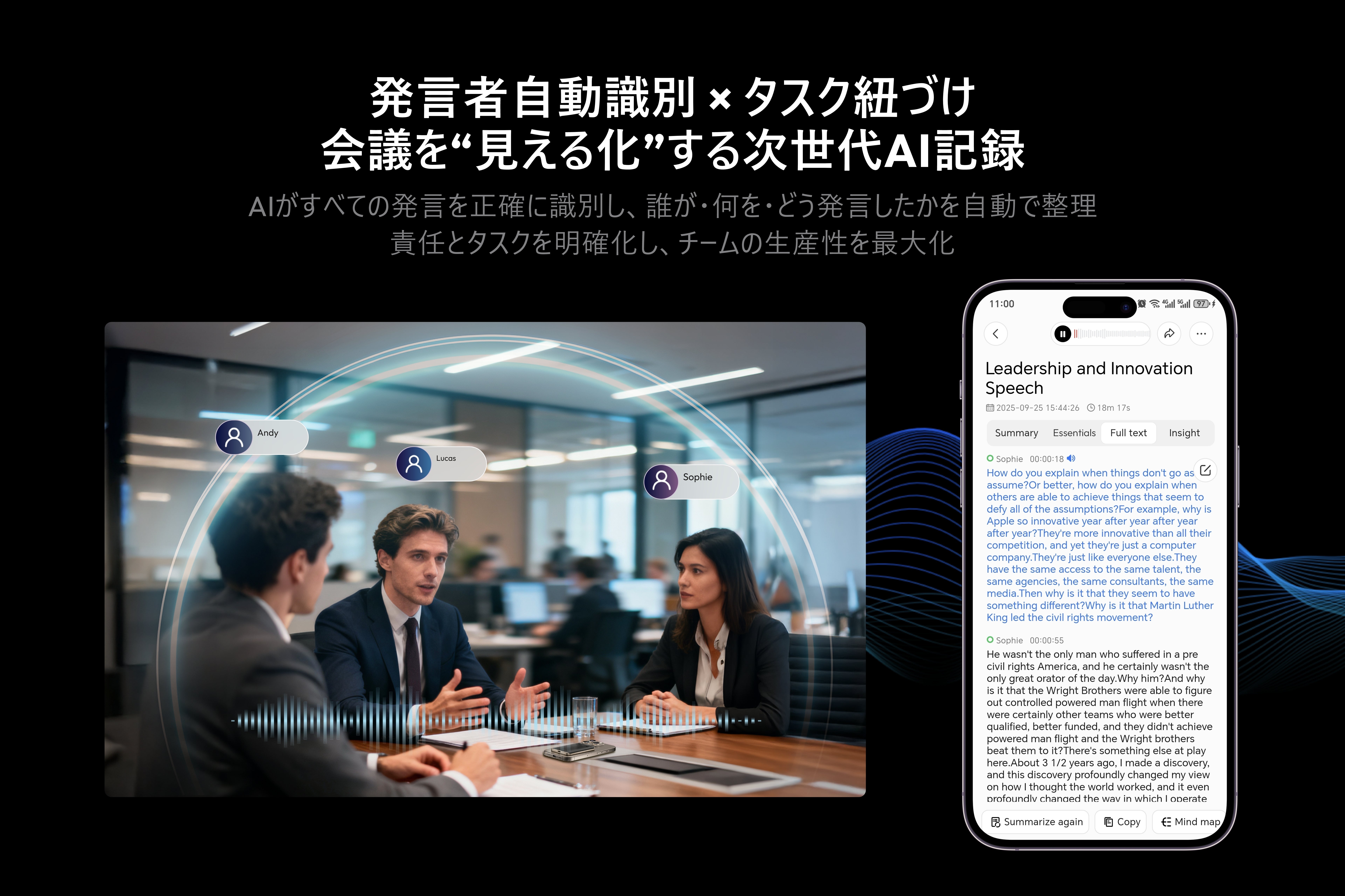 その答えが「AIが自動で議事録を作るレコーダー」でした。