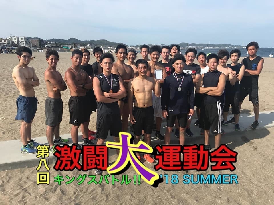 ▽肌を焦がしたムッキムキの男たちの中でひと際白い肌を見せつけているのが僕です。(左端)