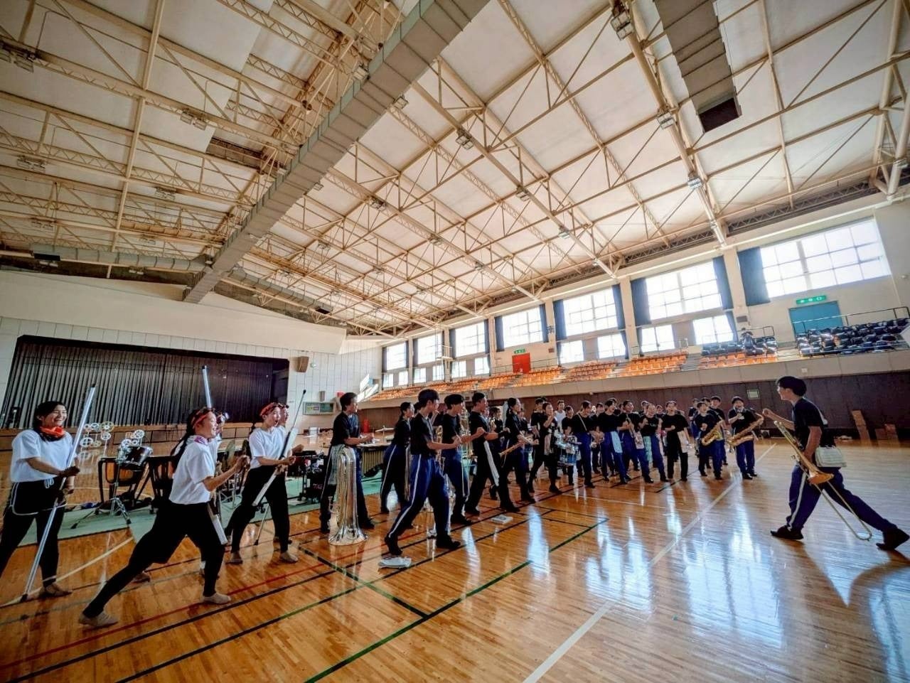 フロアドリルという屋内型マーチング(行進や隊列を組みながら演奏する)の