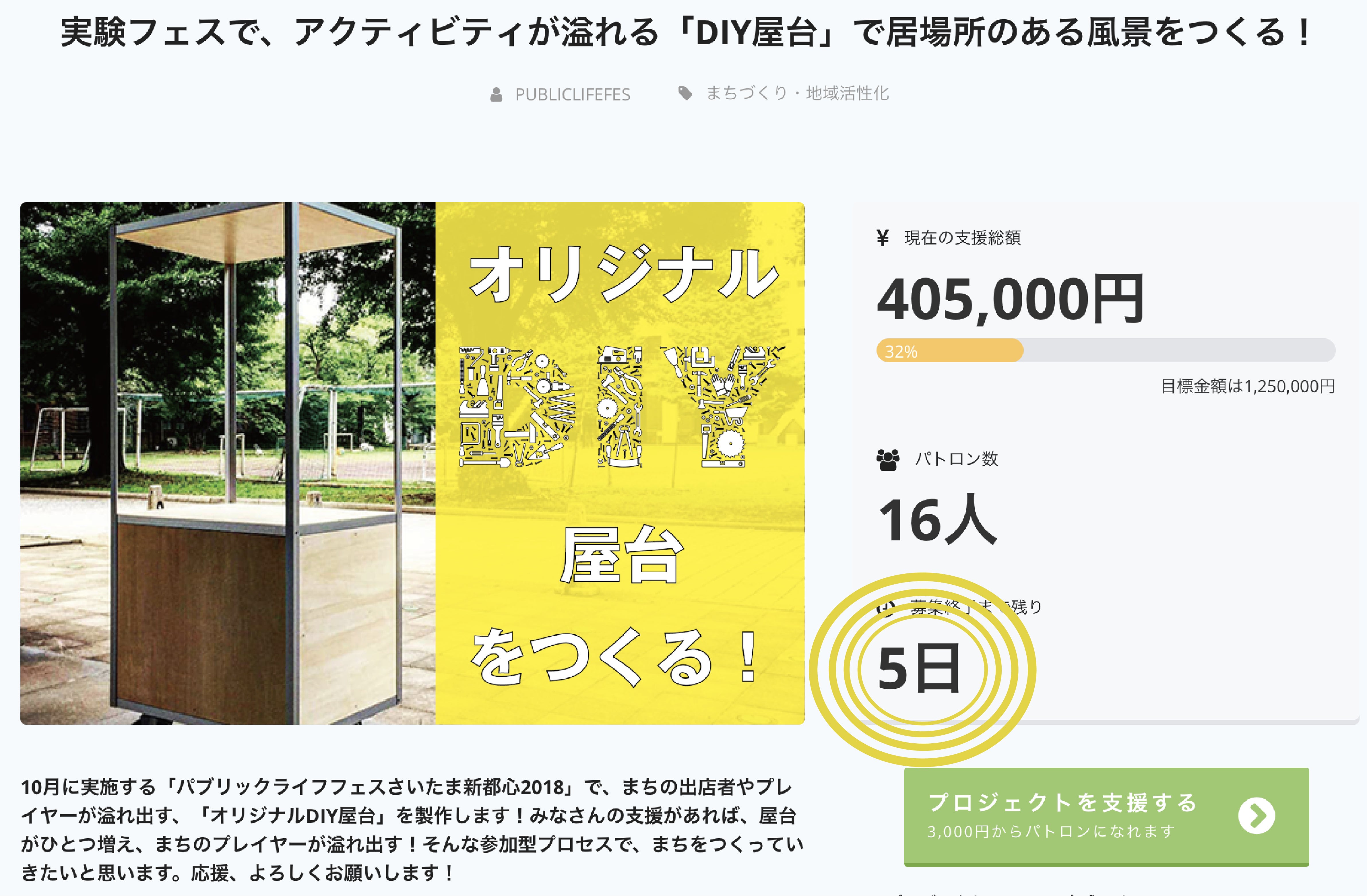 目標金額は1,250,000円