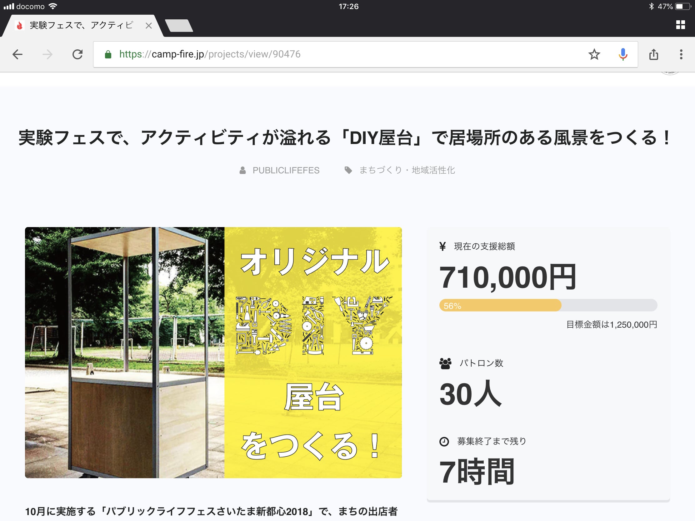 支援総額は50%を突破しました!