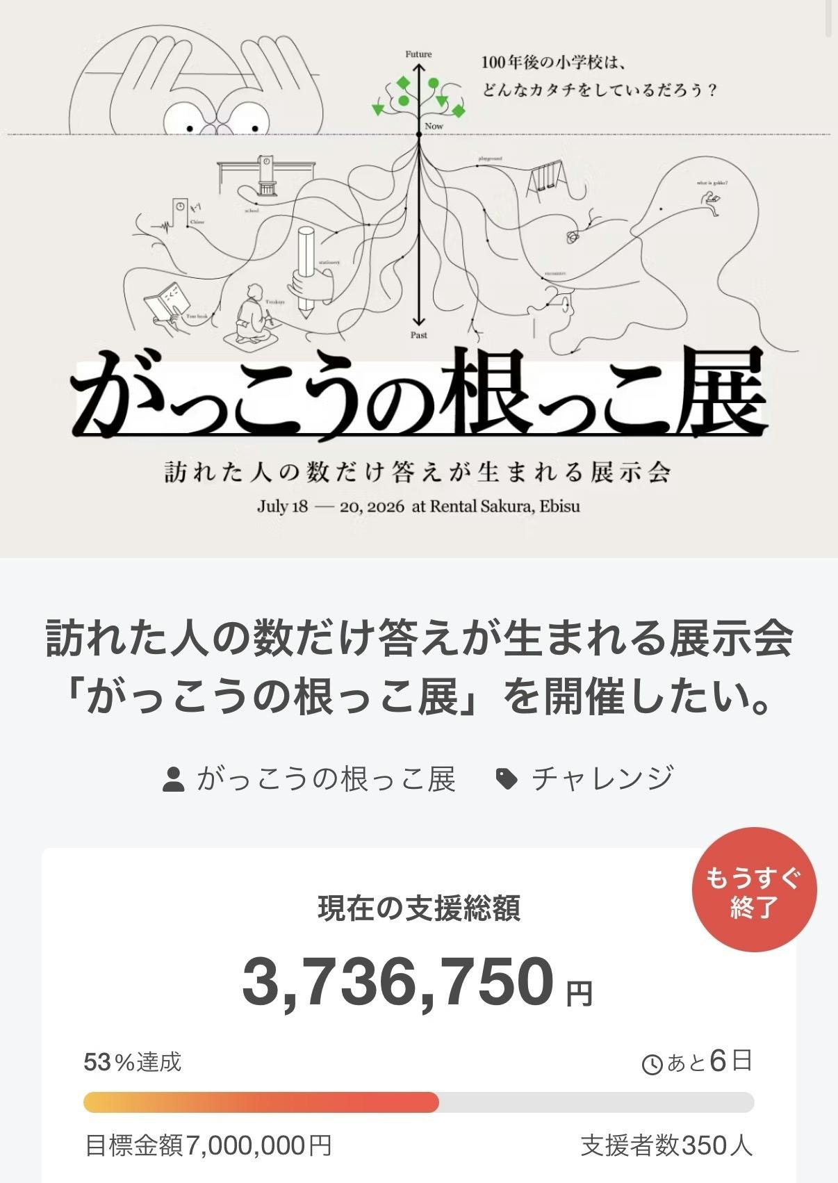 クラウドファンディング終了まであと6日、というタイミングではありますが、