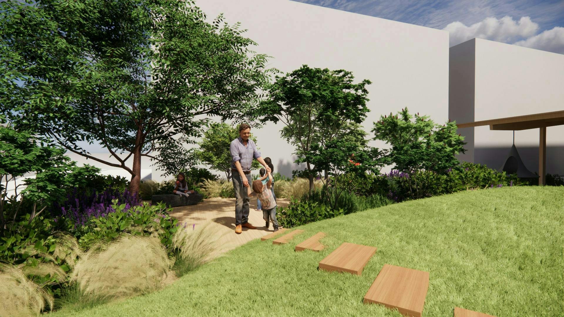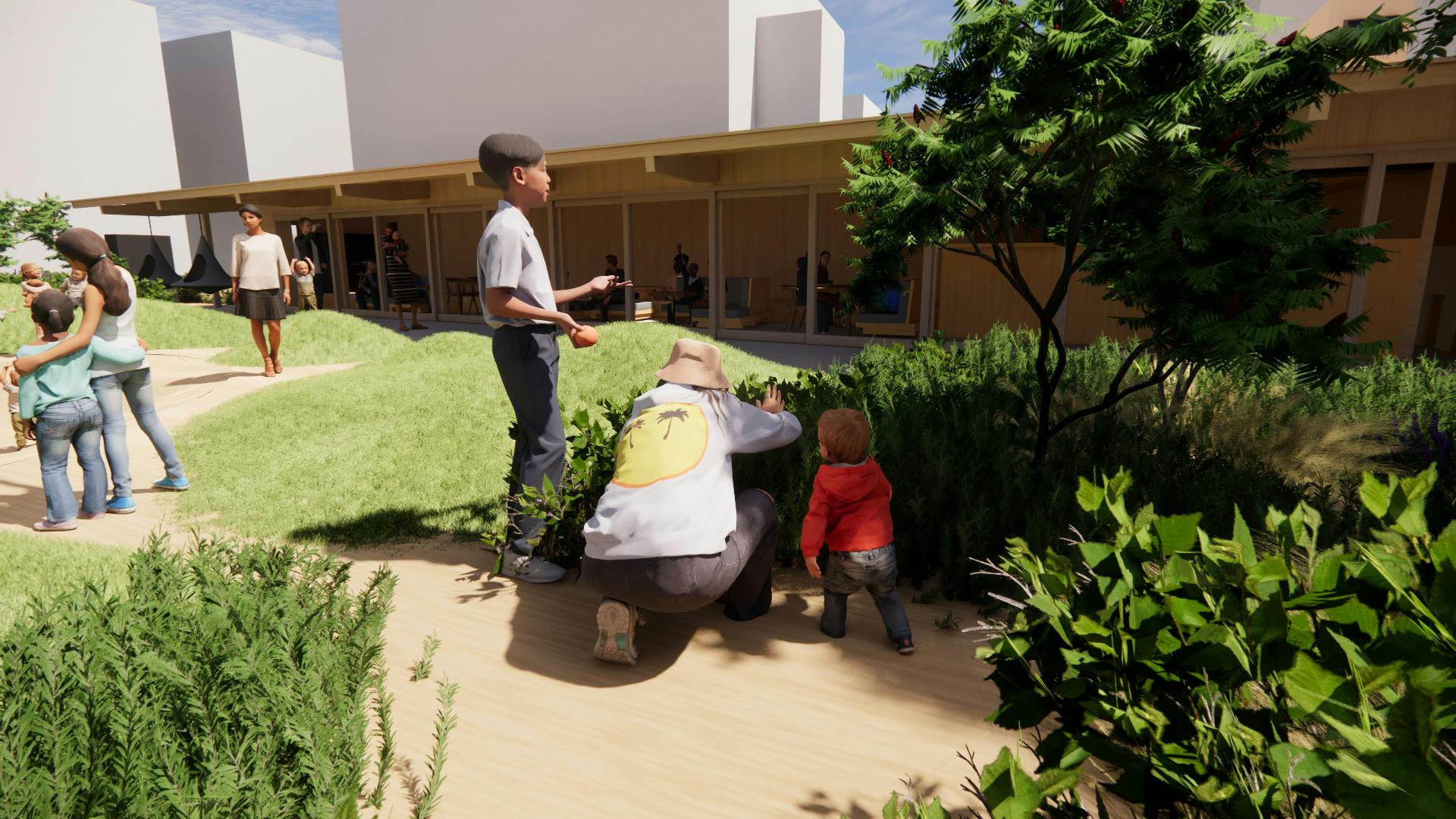 大人は自然を感じながらくつろげる「公園」としてつくりたい。