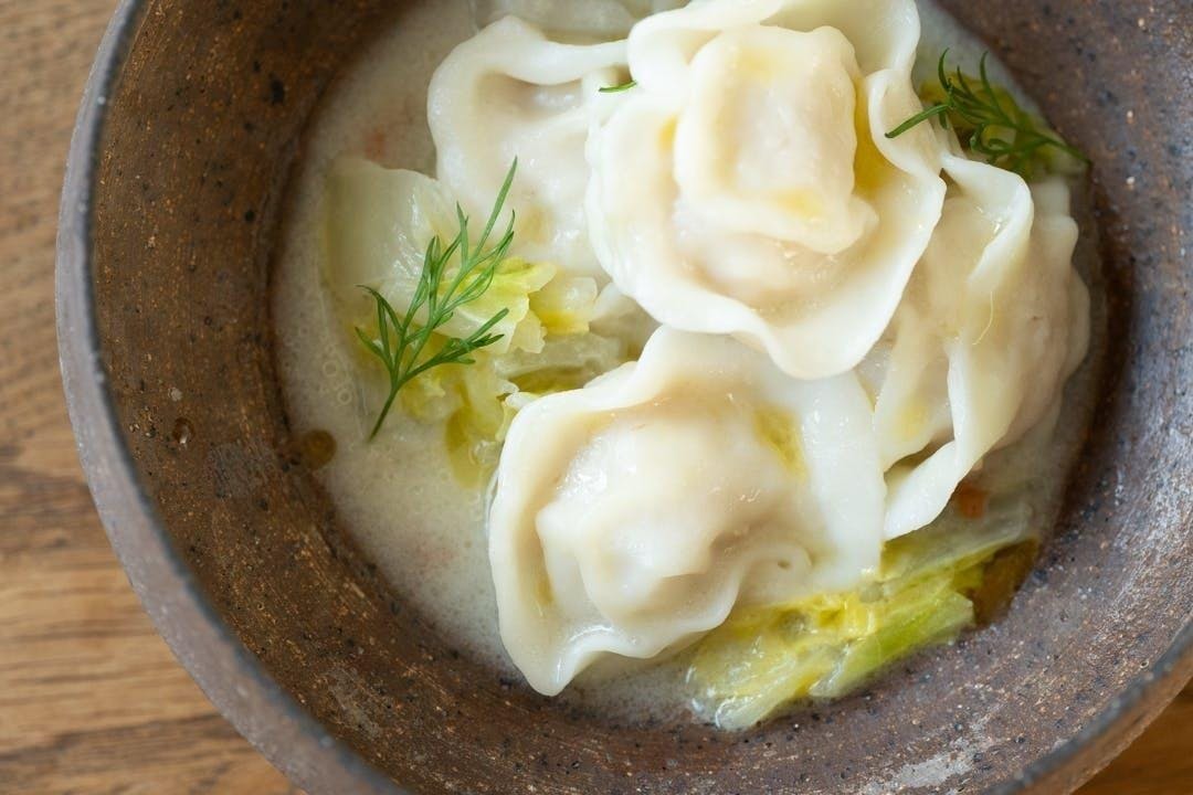 「かまぼこ餃子の梅クリームソース」