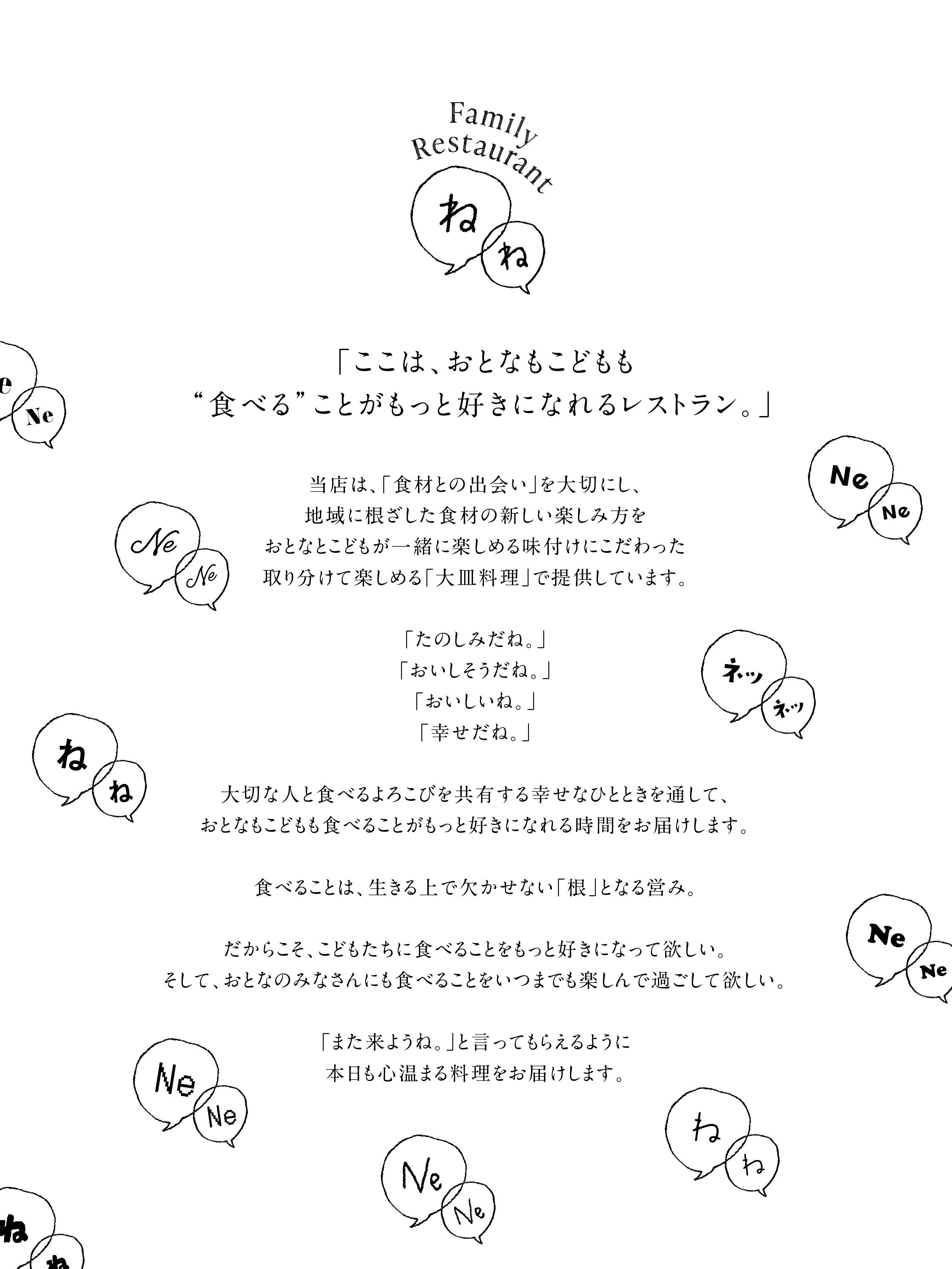 「おとなもこどもも“食べる”ことがもっと好きになれるレストラン」をコンセプトにしております。