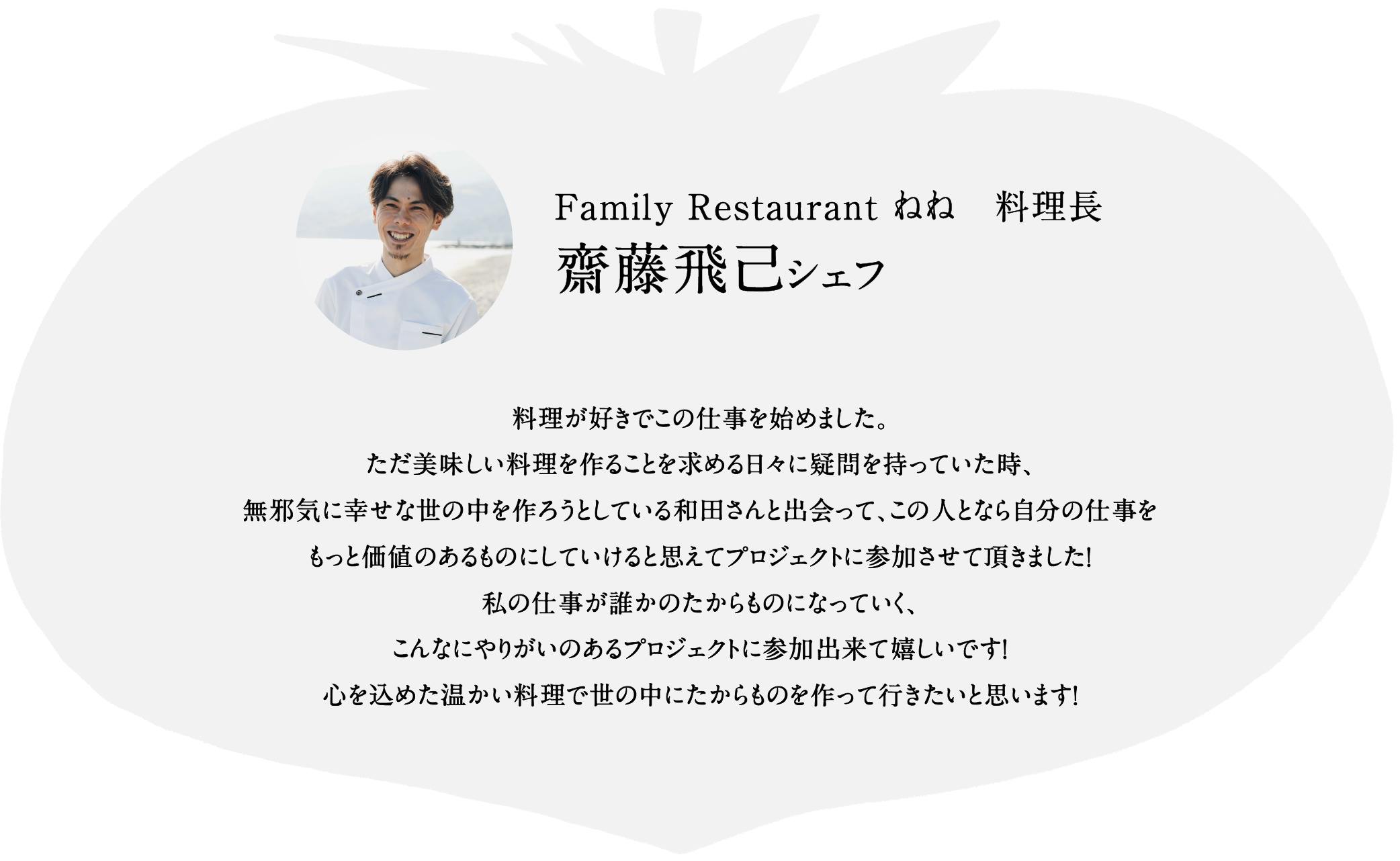 齋藤シェフは「Family Restaurant ねね」の料理長を担います。
