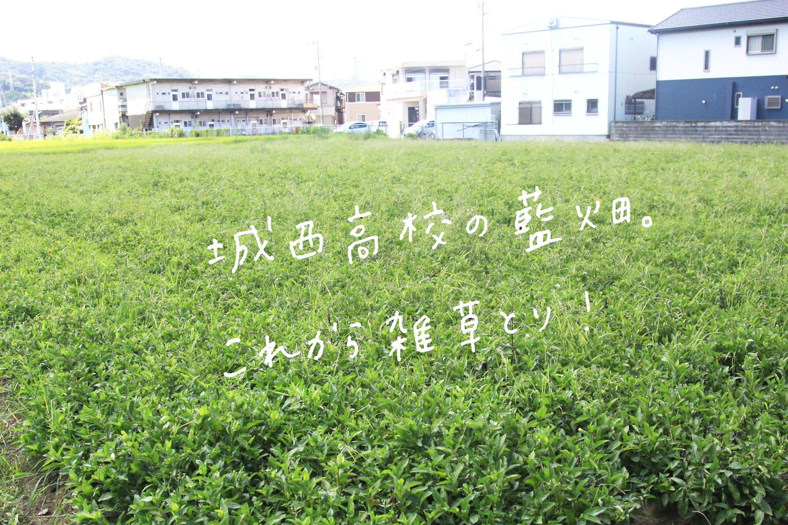 城西高校の藍畑。無農薬のため、雑草むしりも大変。
