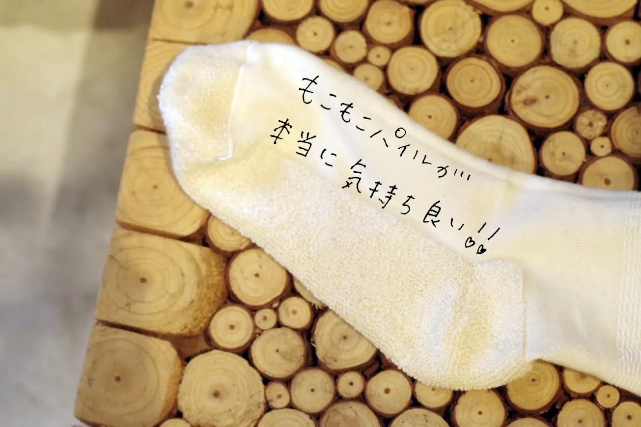 特殊なゴムで口ゴムの負担をなくし、力のかかるかかとはパイル編みでやさしくカバー。