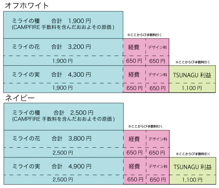 また、この商品は本当にすべての方に届けたいほどすばらしい商品なので、TSUNAGUは原価を公表し、みなさんにぴったりの価格を選んでもらうことにしました。