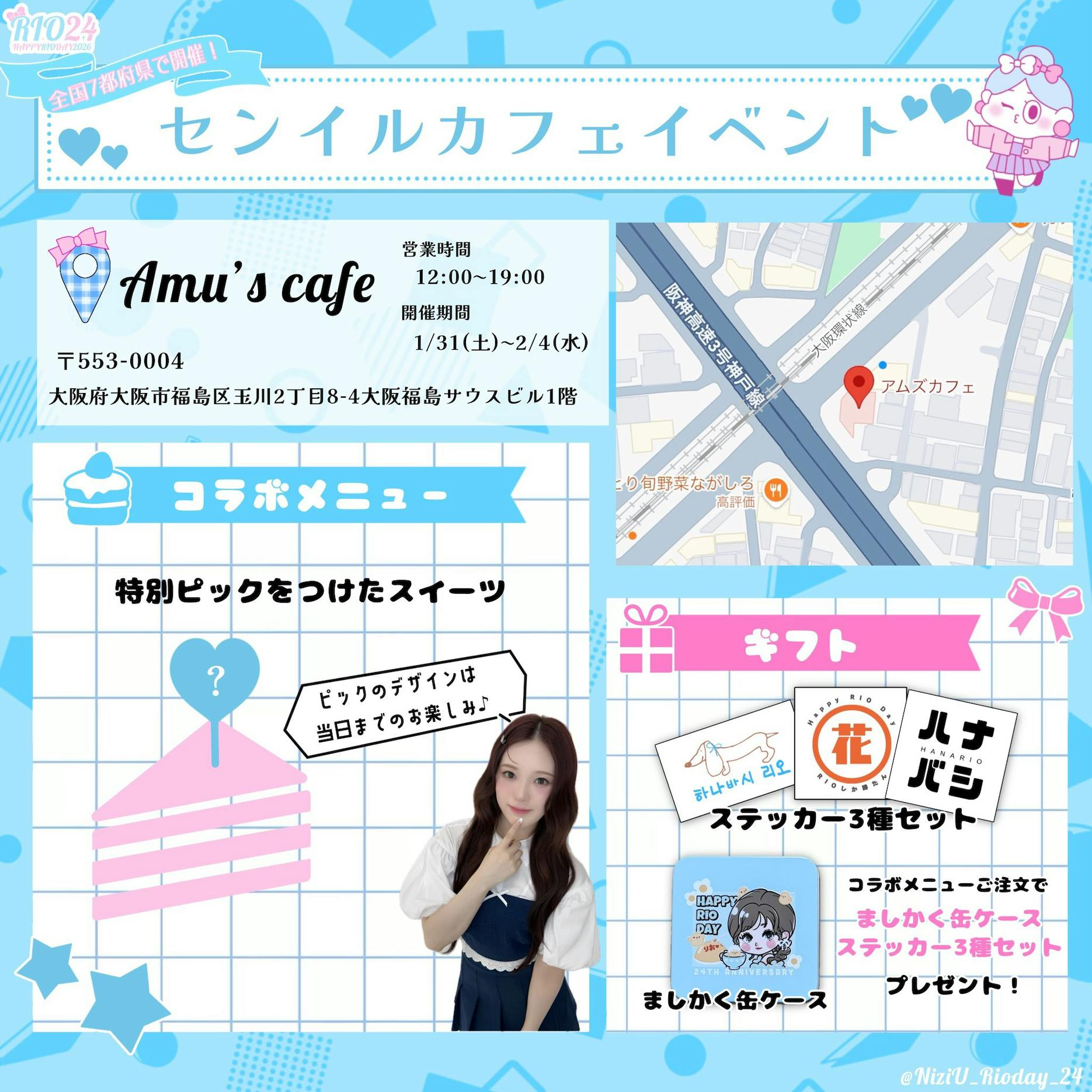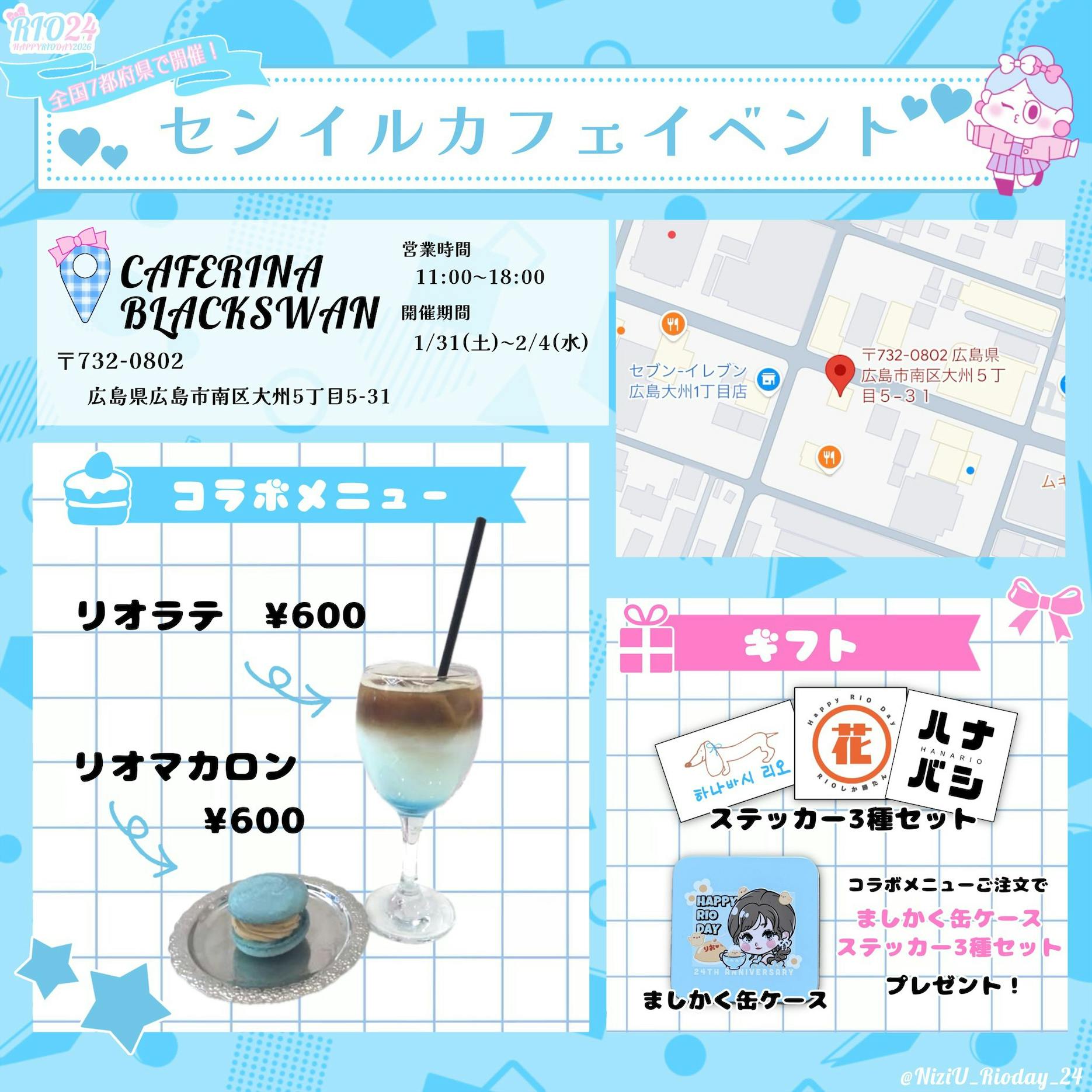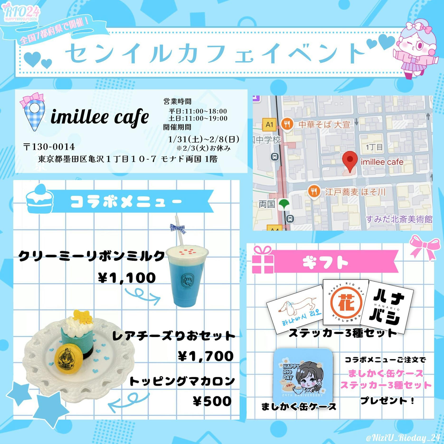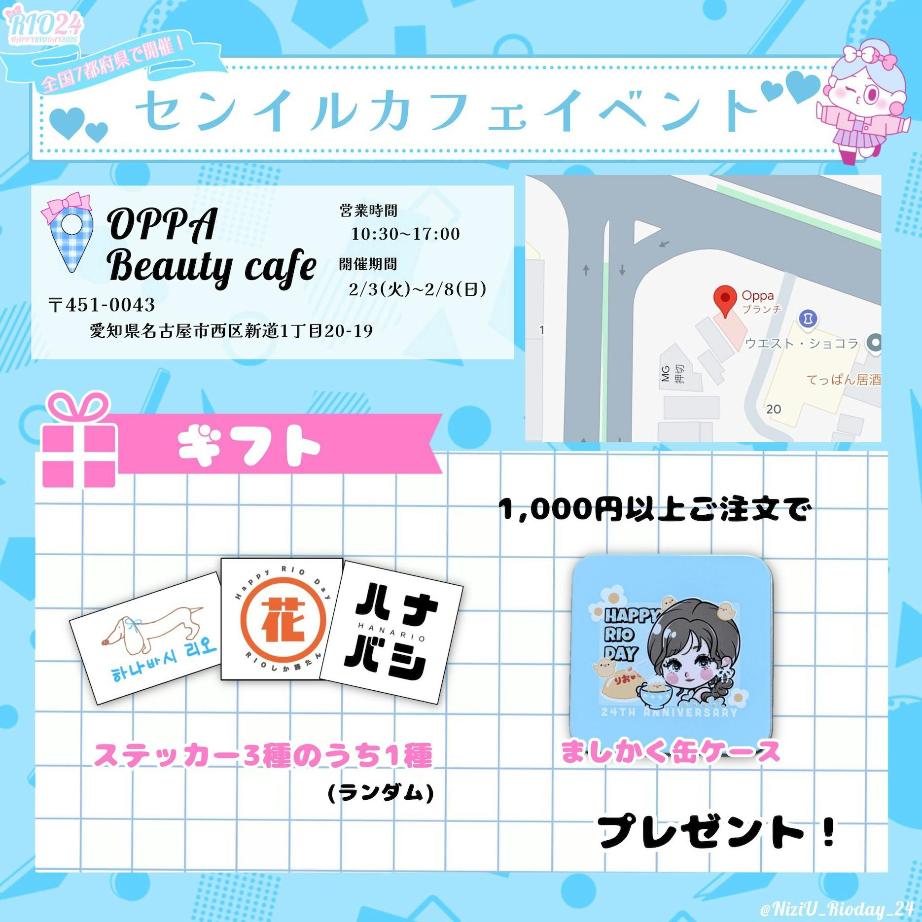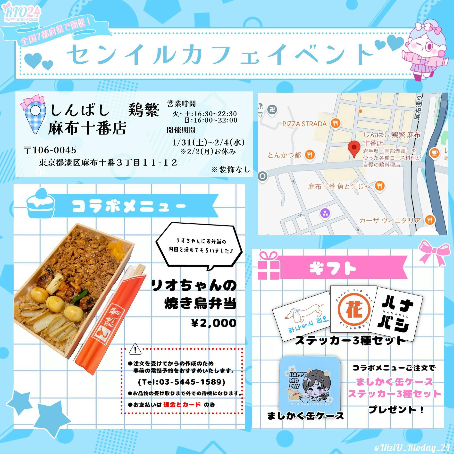 ご不明点ございましたら店舗様へのお問合せはご遠慮いただき、こちらのメッセージかTwitter@Niziu_rioday_24 までによろしくお願いします。