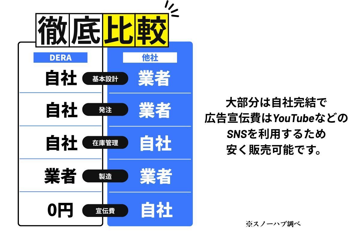 デザイン、発注、在庫管理運営、マーケティングなどをほぼ自社事業で対応しているからです。余分なコストはかかっていません。