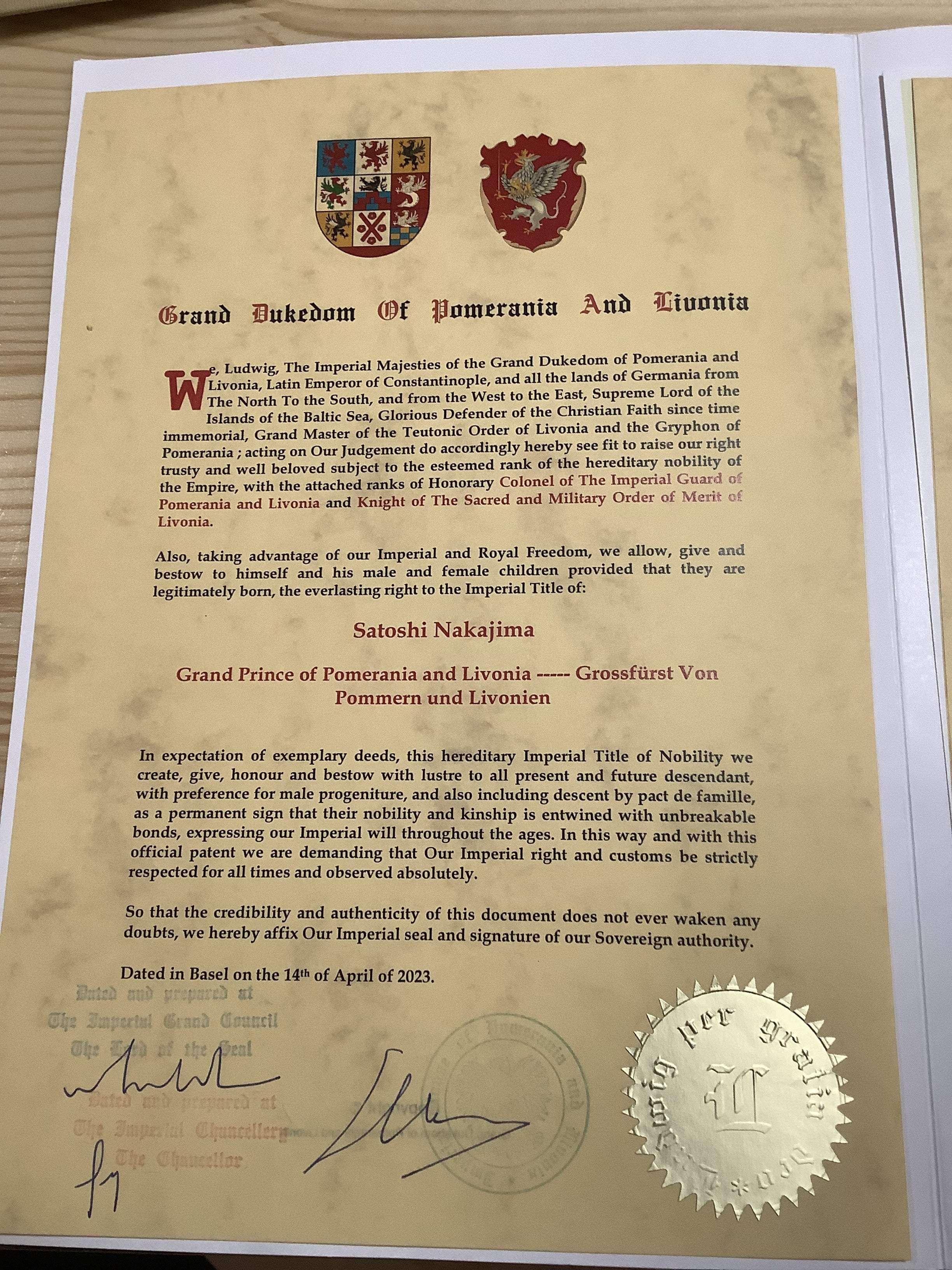・大王子(Grand Prince) 授与