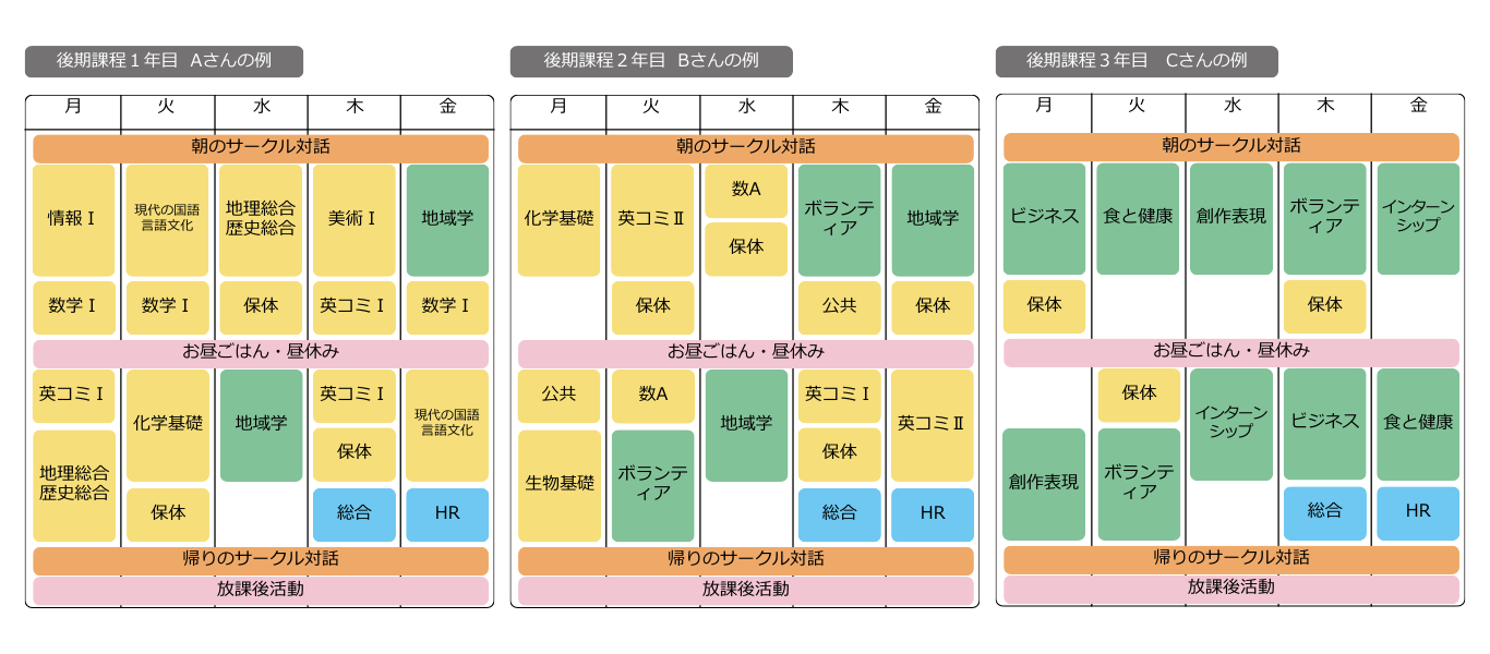 大日向中等教育学校(後期課程)カリキュラム例