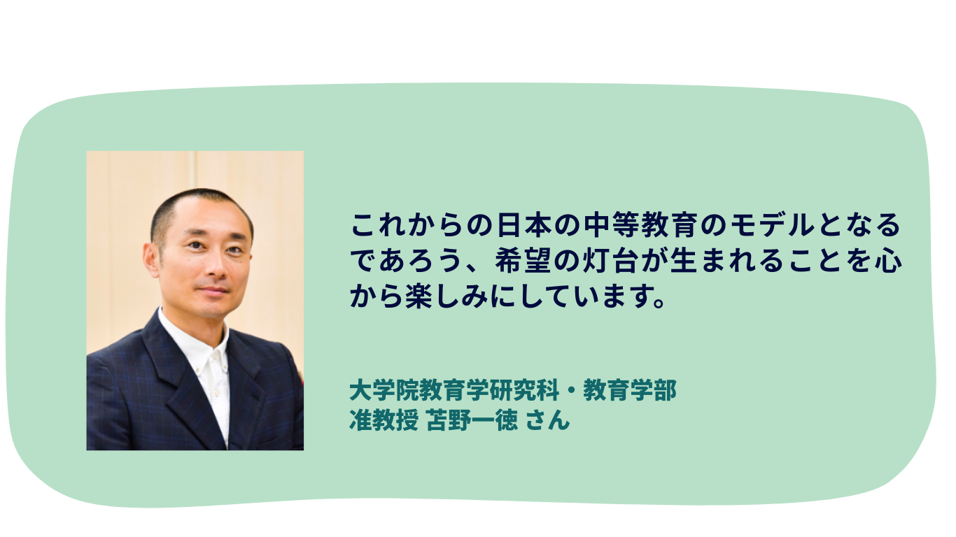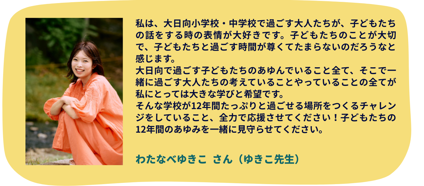 今回のクラウドファンディングを通じて、中等教育学校の開校資金をご支援いただくだけでなく、教育のパラダイムシフトを共に実現していくパートナーとして、応援・共感していただけたらとても嬉しいです。