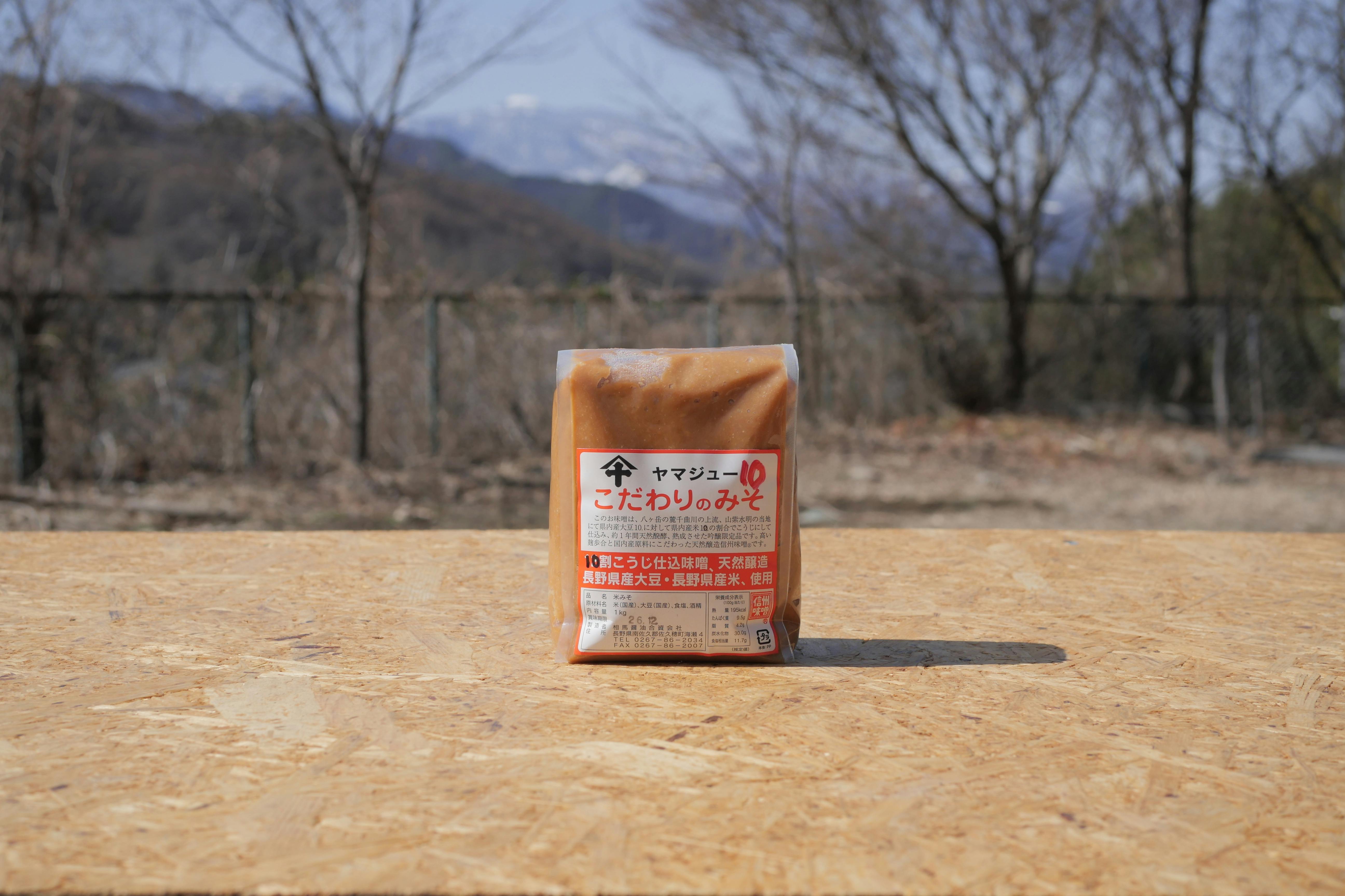 つづいては、相馬醤油さんの「こだわりのみそ」。春先に仕込み、春から夏へと気温が上がる自然の力を生かして発酵させ、翌年の春までじっくり熟成させています。時間をかけて育てられた味噌は、まろやかで奥行きのある味わい。味噌汁はもちろん、そのままキュウリやナスにつけるだけでも、素材の美味しさをぐっと引き立ててくれます。