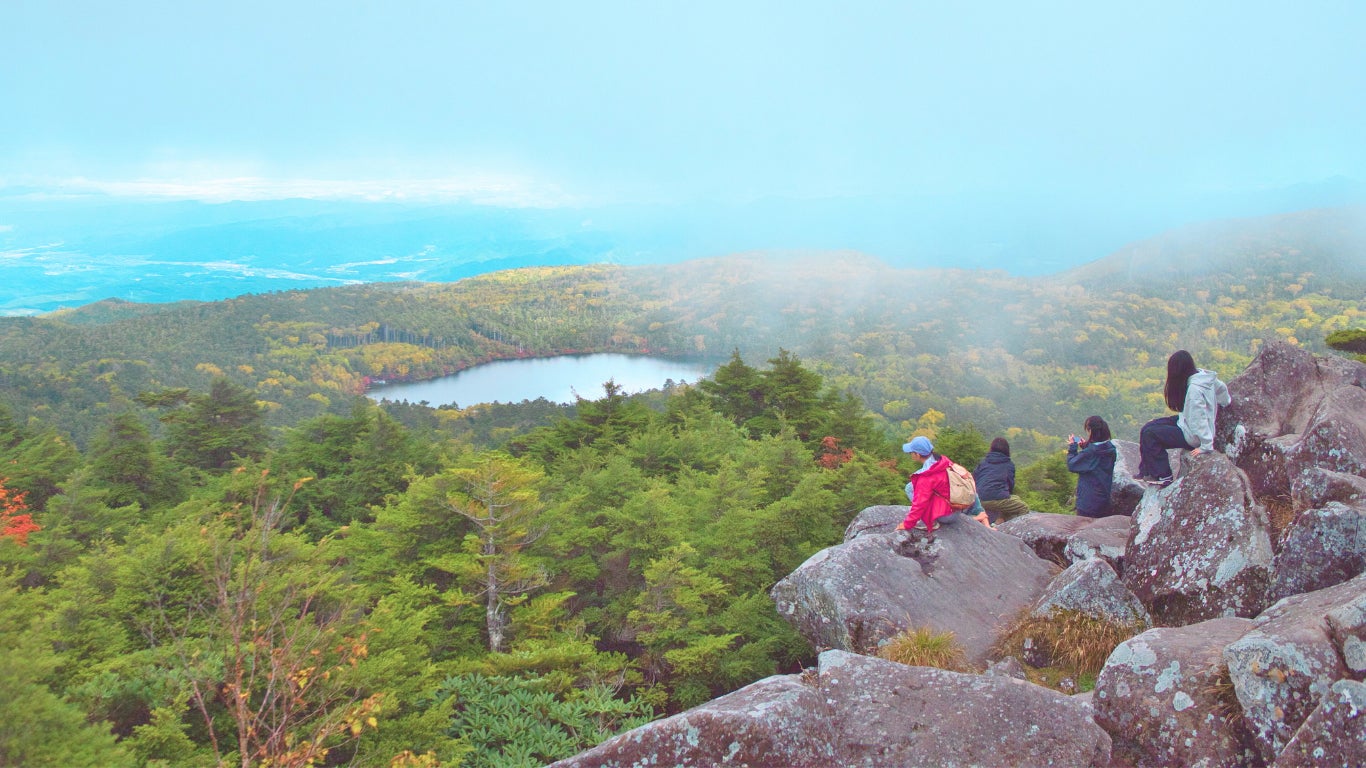 高見岩から白駒池を眺める。絶景。