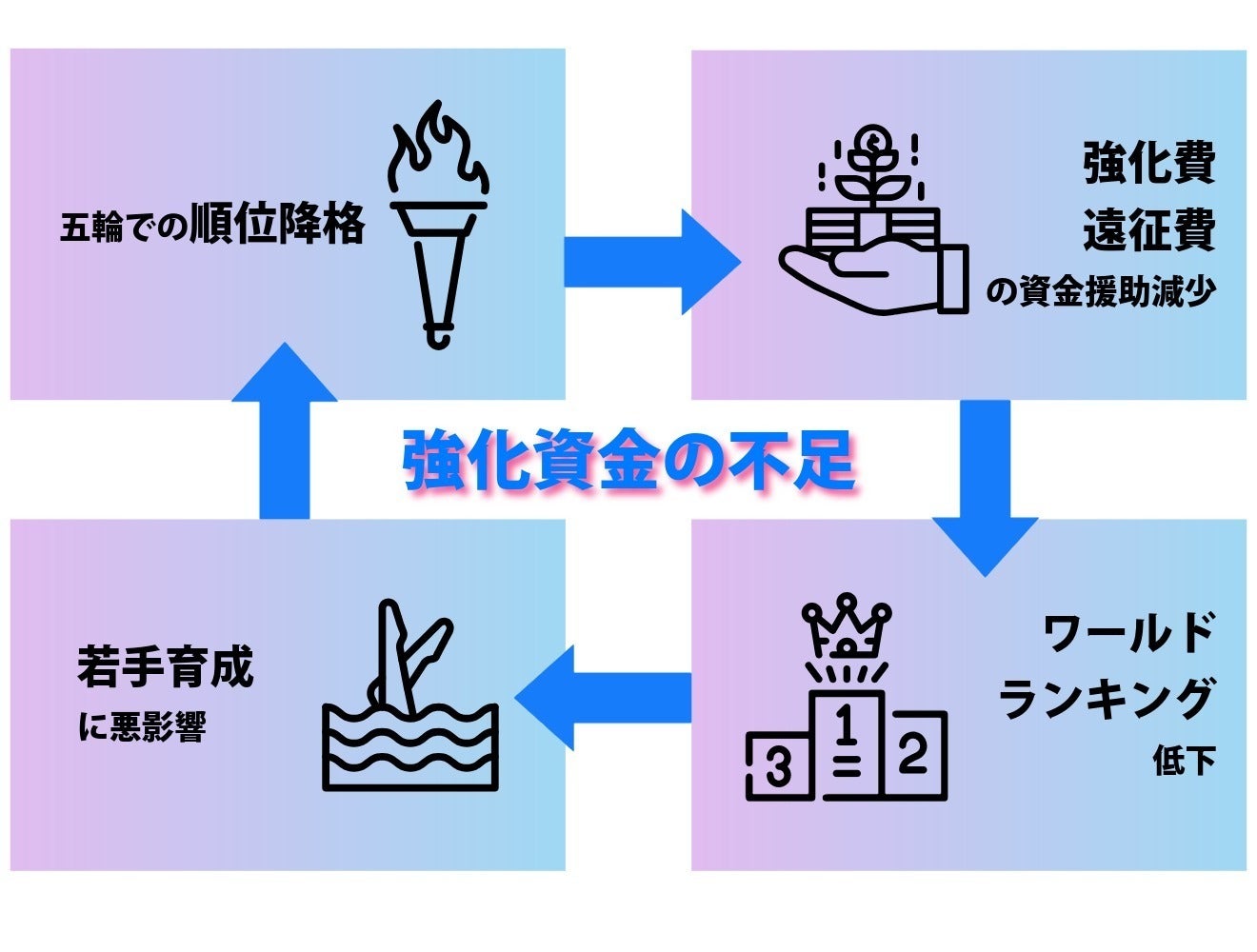 国際大会での好成績が残せないと、日本オリンピック委員会からの強化費も削減されます。