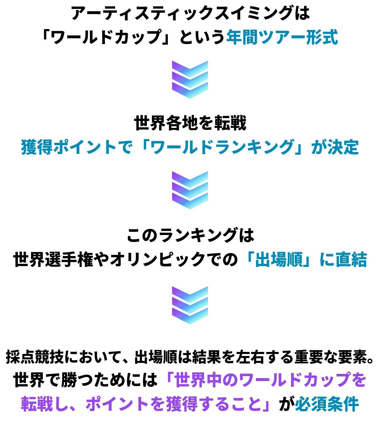 「お家芸」崩壊の危機。ルール改正により、世界大会での不利な出番順を避けるために「ワールドカップ転戦」が不可欠となりました。しかし、円安・遠征費高騰・補助金減額という現実が、日本代表の前に立ちはだかっています。日本の伝統と次世代の未来を守り、再び世界の頂点へ。マーメイドジャパンの挑戦を支えてください。
