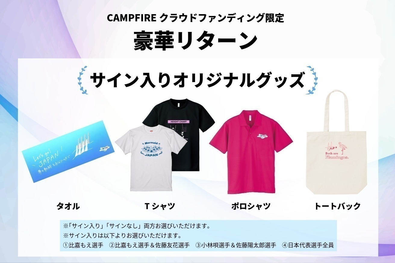 • マーメイドジャパンの応援をしていただきありがとうございます。この度、ご好評をいただき早々に売り切れていましたリターンチケットを限定5で追加しました!【5/24限定 日本選手権ご招待チケット 50,000円】マーメイドジャパンと・写真撮影・サイン会・ブロマイド手渡し日本選手権観戦後、代表選手と交流できるVIPな機会です。気になる方はこの機会にぜひご支援ください。引き続き、私たちの挑戦は続きます。お知り合いの方へも、私たちの想いを届けていただけますと嬉しく思います。▶ ご支援はこちらからhttps://camp-fire.jp/projects/905017/view もっと見る