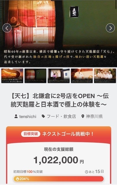 2026/04/03 17:00日頃より温かいご支援を賜り、誠にありがとうございます。天七馬車道本店は、食べログ百名店に3年連続で選出いただいております。これまで多くのお客様にご評価いただいてきた体験を、北鎌倉の新たな空間にてご提供させていただきます。本プロジェクトのご購入は、4月30日をもって受付終了となります。ご検討中の皆様はぜひお早めにご確認くださいませ。皆様にお会いできる日を、心より楽しみにしております。 もっと見る