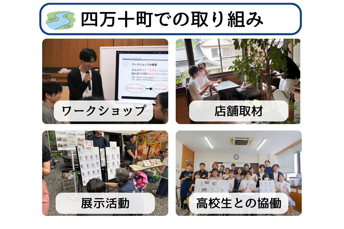 四万十町役場や四万十町の高校生と協力して、イベント開催や店舗取材、展示活動などを行ってきました。