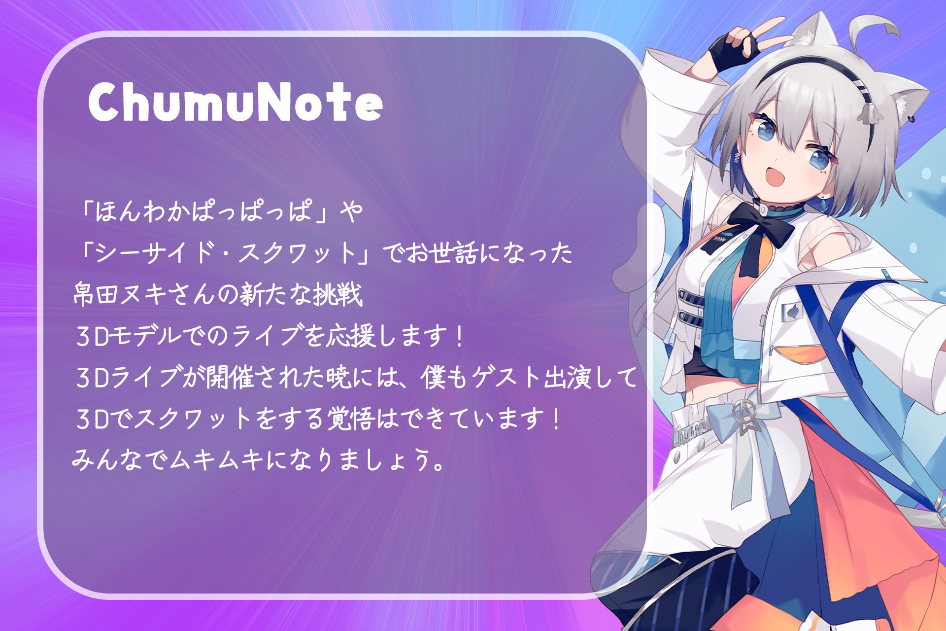 もっと大きなステージに立つ帛田ヌキを見たい!! 3Dモデルを手に入れて更に大きなたぬきになっていくのを楽しみにしてます!!お披露目ライブでChumuNoteさんとのスクワットが見られるのも楽しみ!!