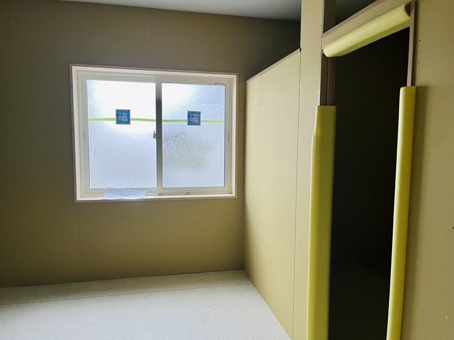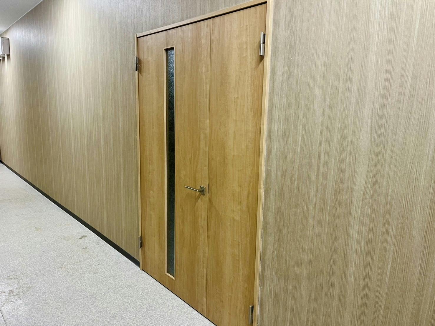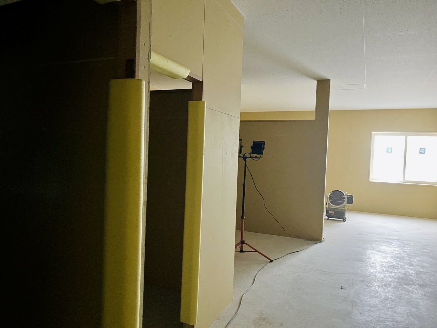 まず、ドアが設置され、事務所として出入りができるようになりました。