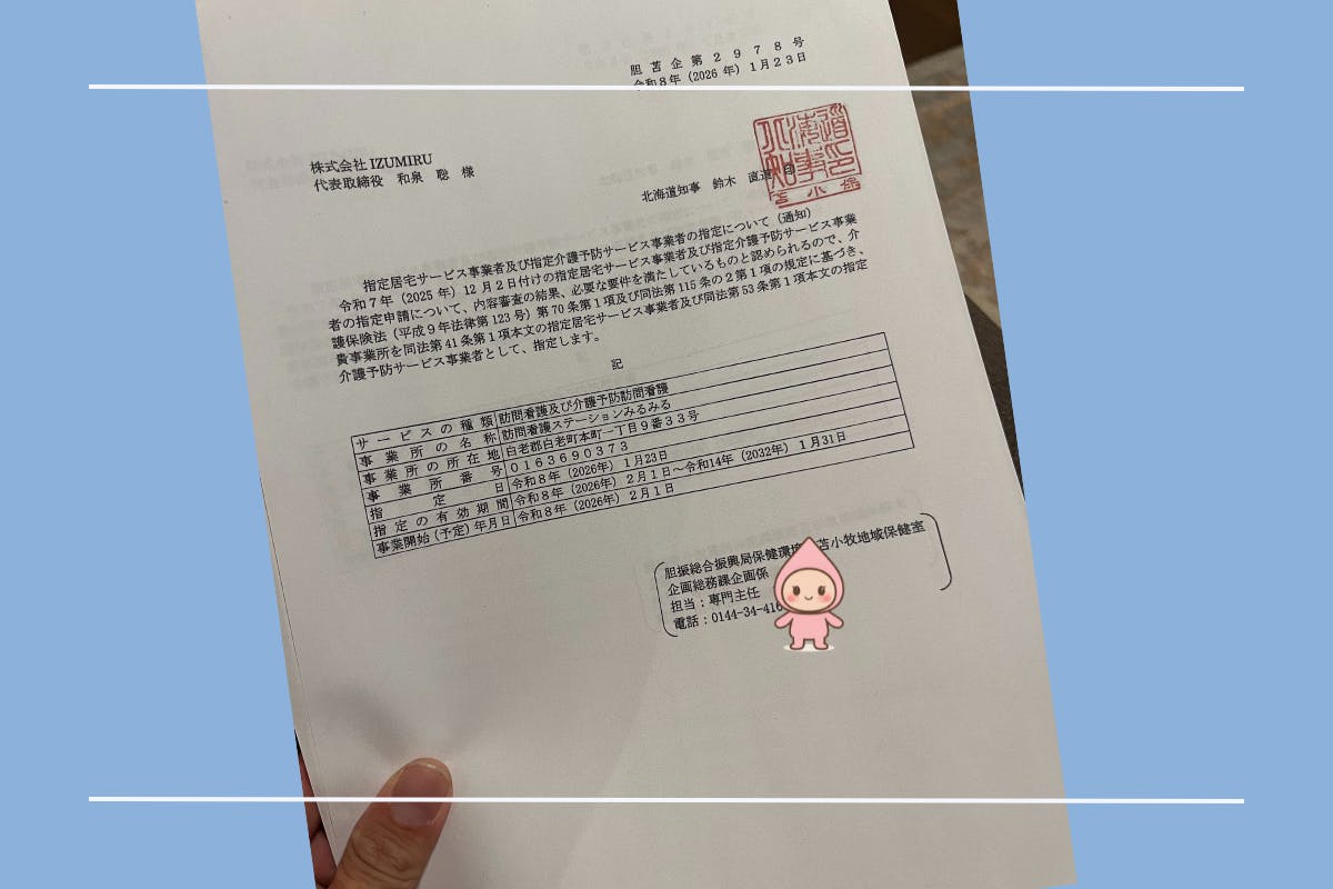 1月23日、訪問看護ステーションみるみるの指定通知が、無事に届きました。