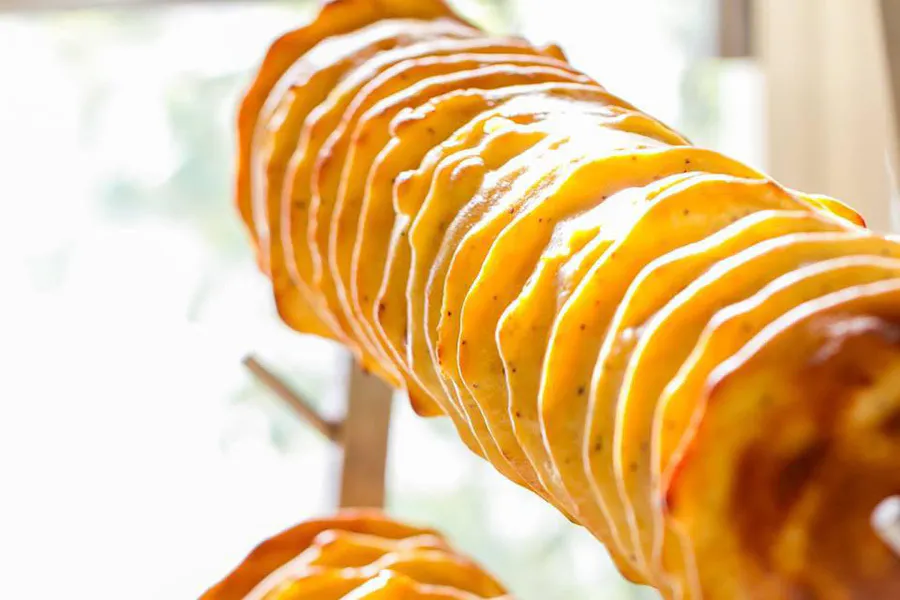 この写真は6層目くらい。段々と層が重なる事に大きく重くなっていく、自分の目で見て見て見て!心で感じながら愛情かけて焼いていく。
